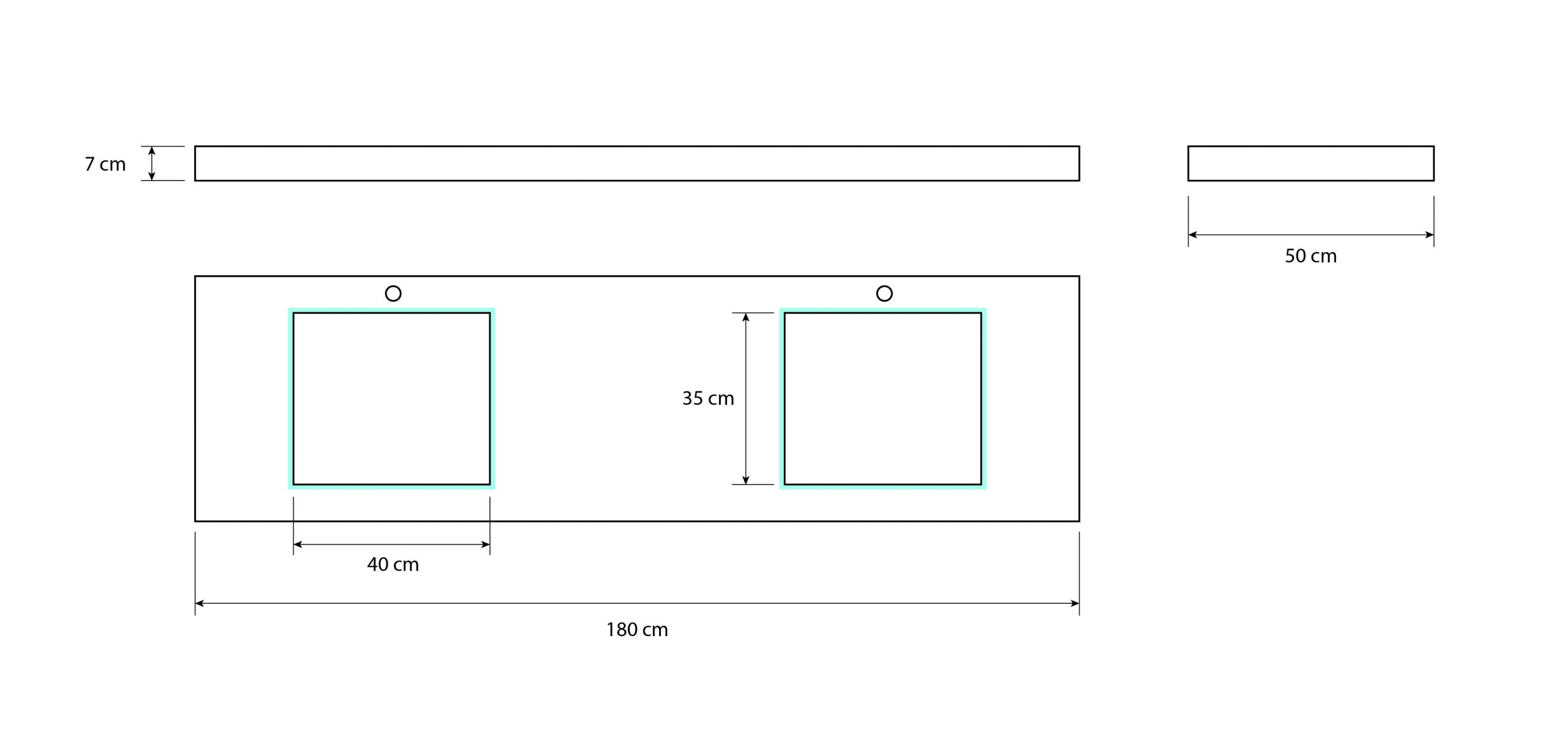 Lavabo Minimal Rectangulaire Extra-plat 180 cm double vasque