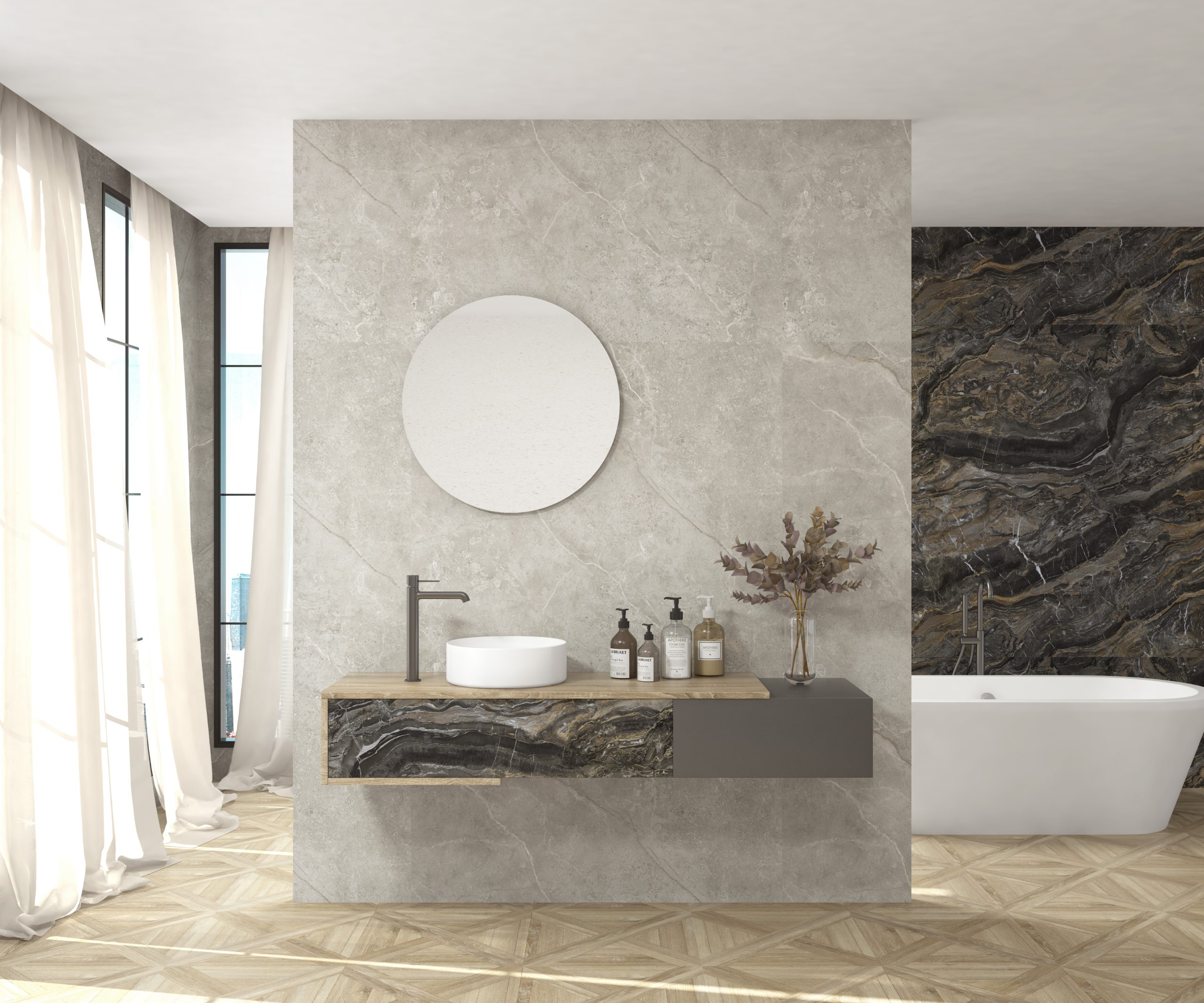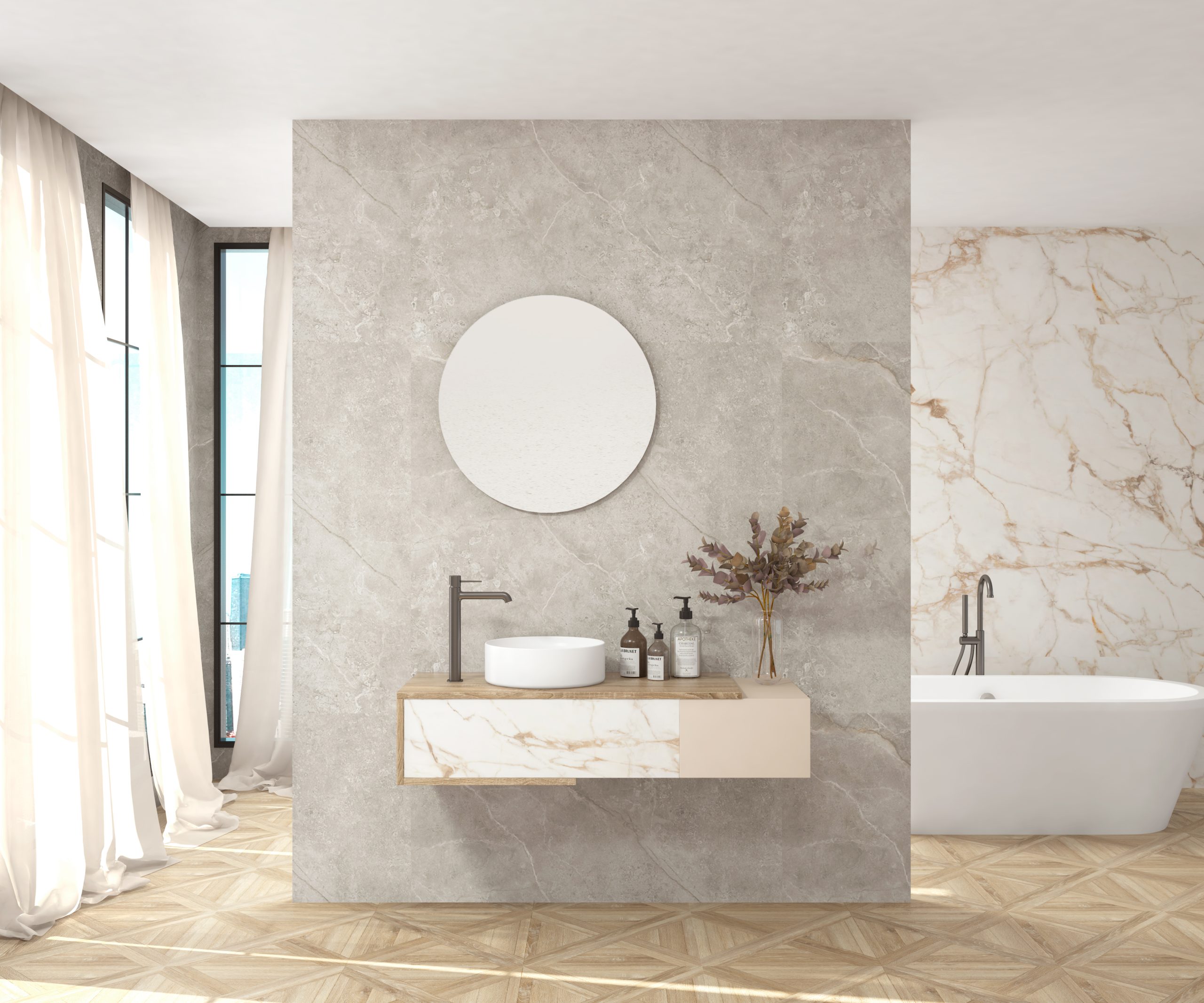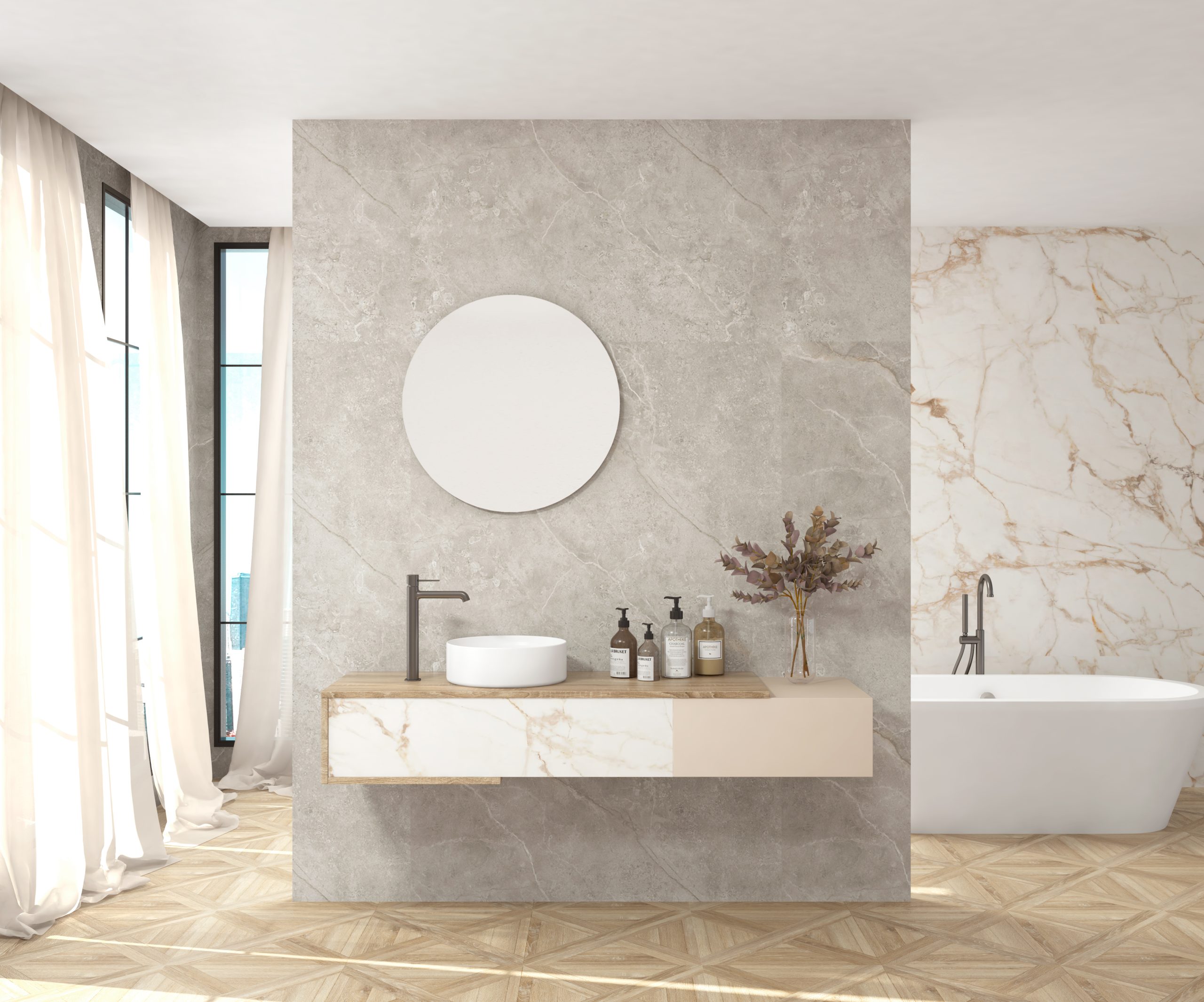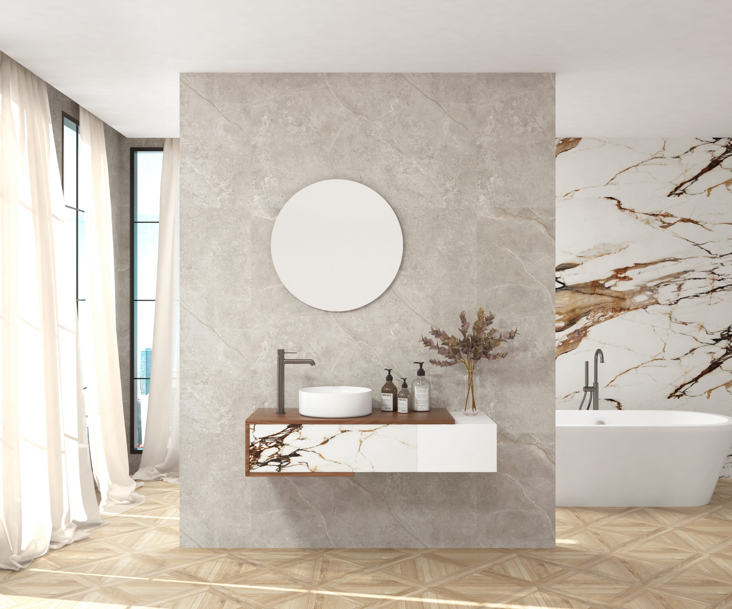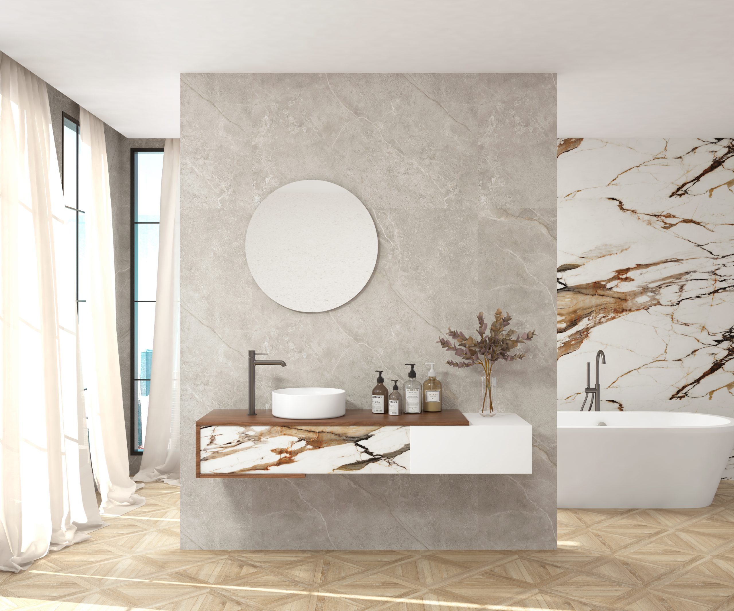 Calacatta gold – Bardolino, Orobico dark – Bardolino, Paonazzo biondo – Nogal