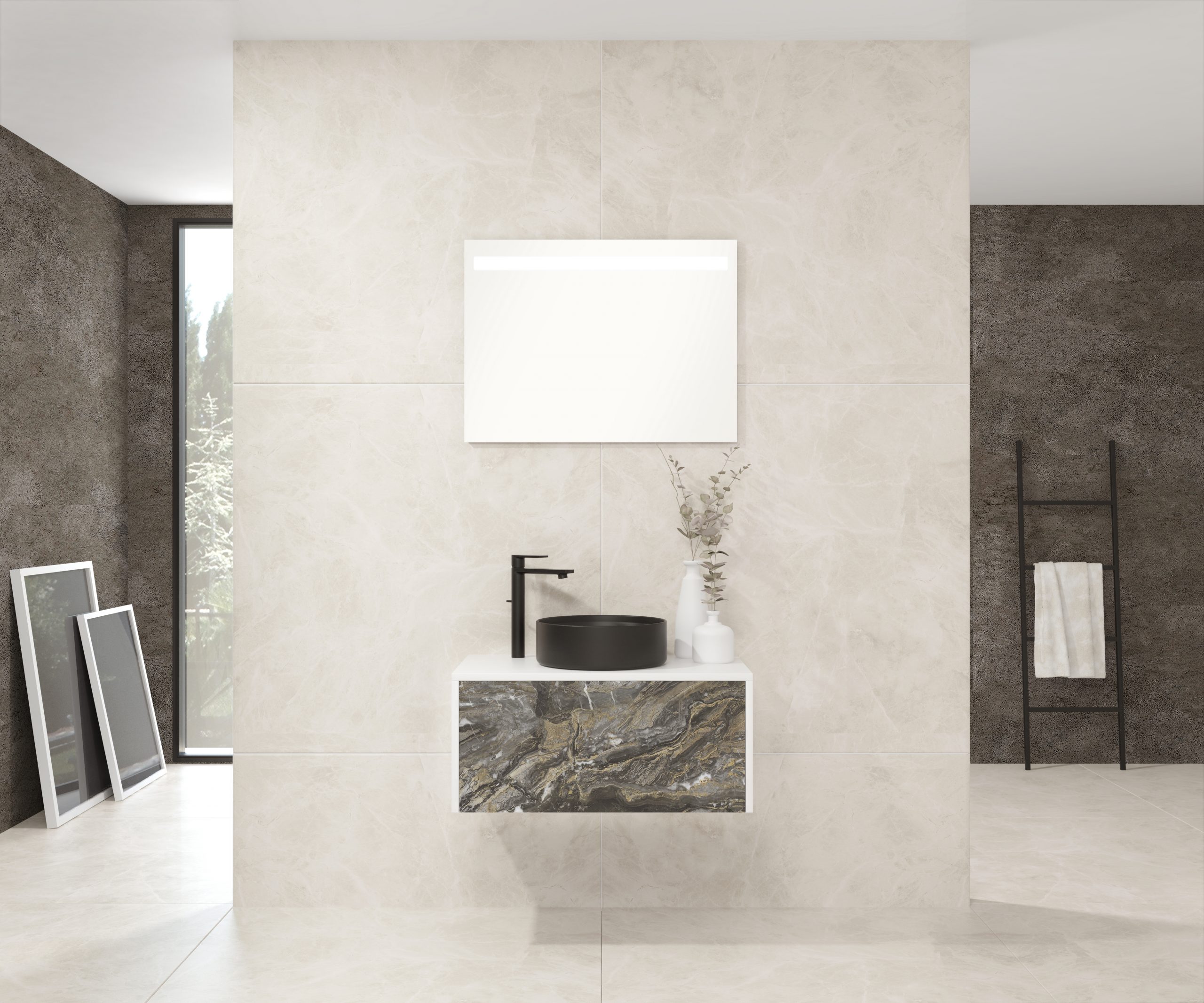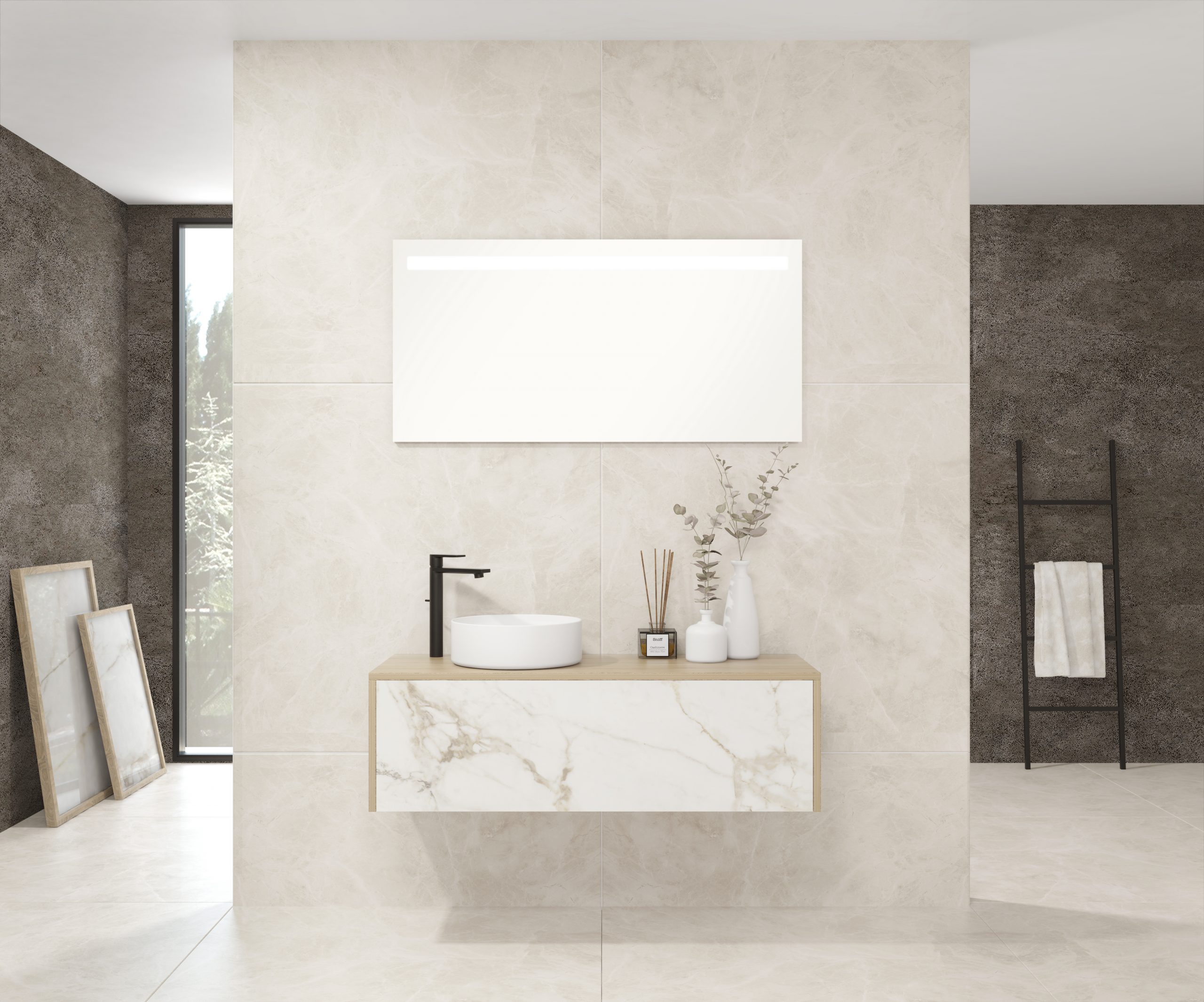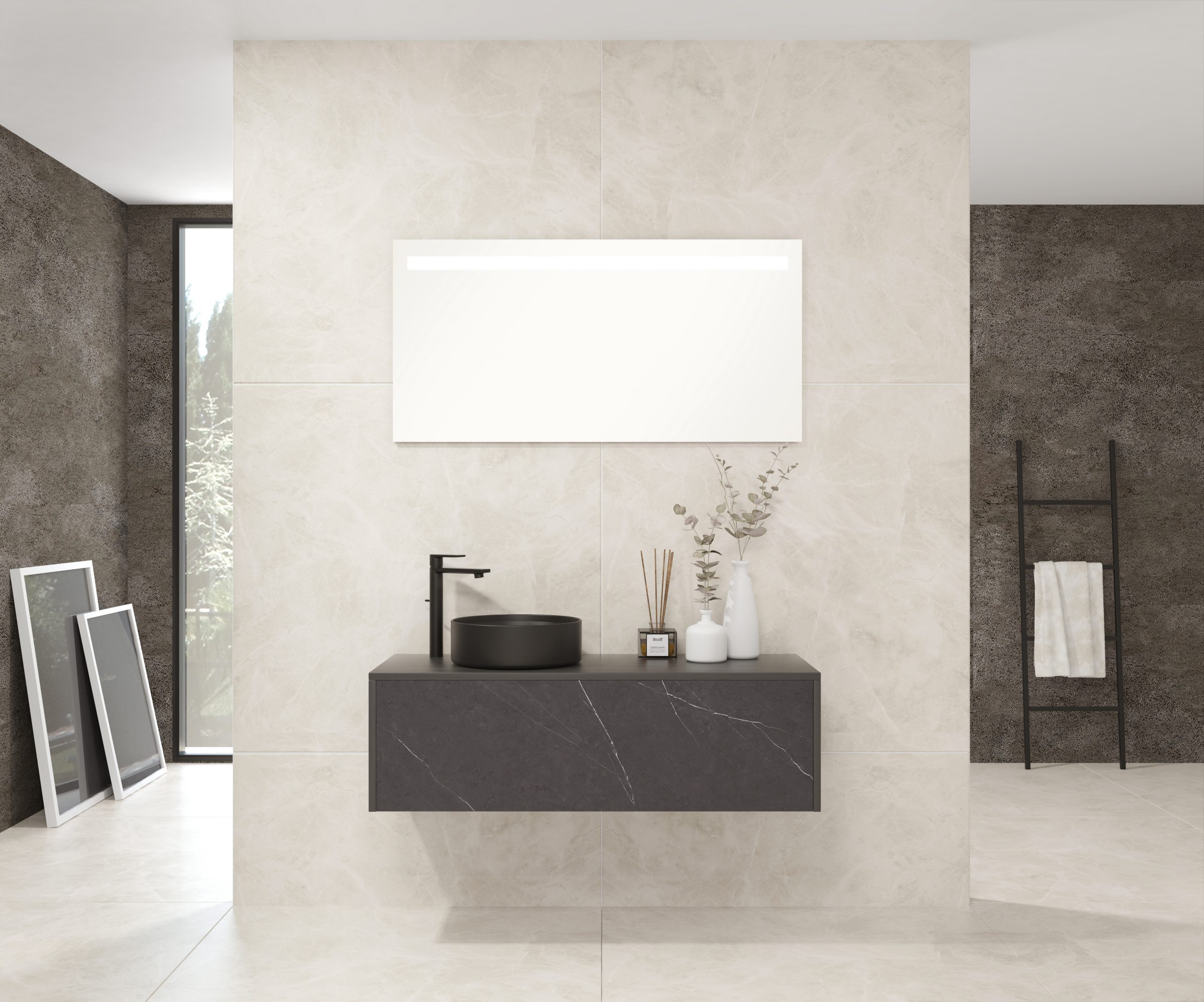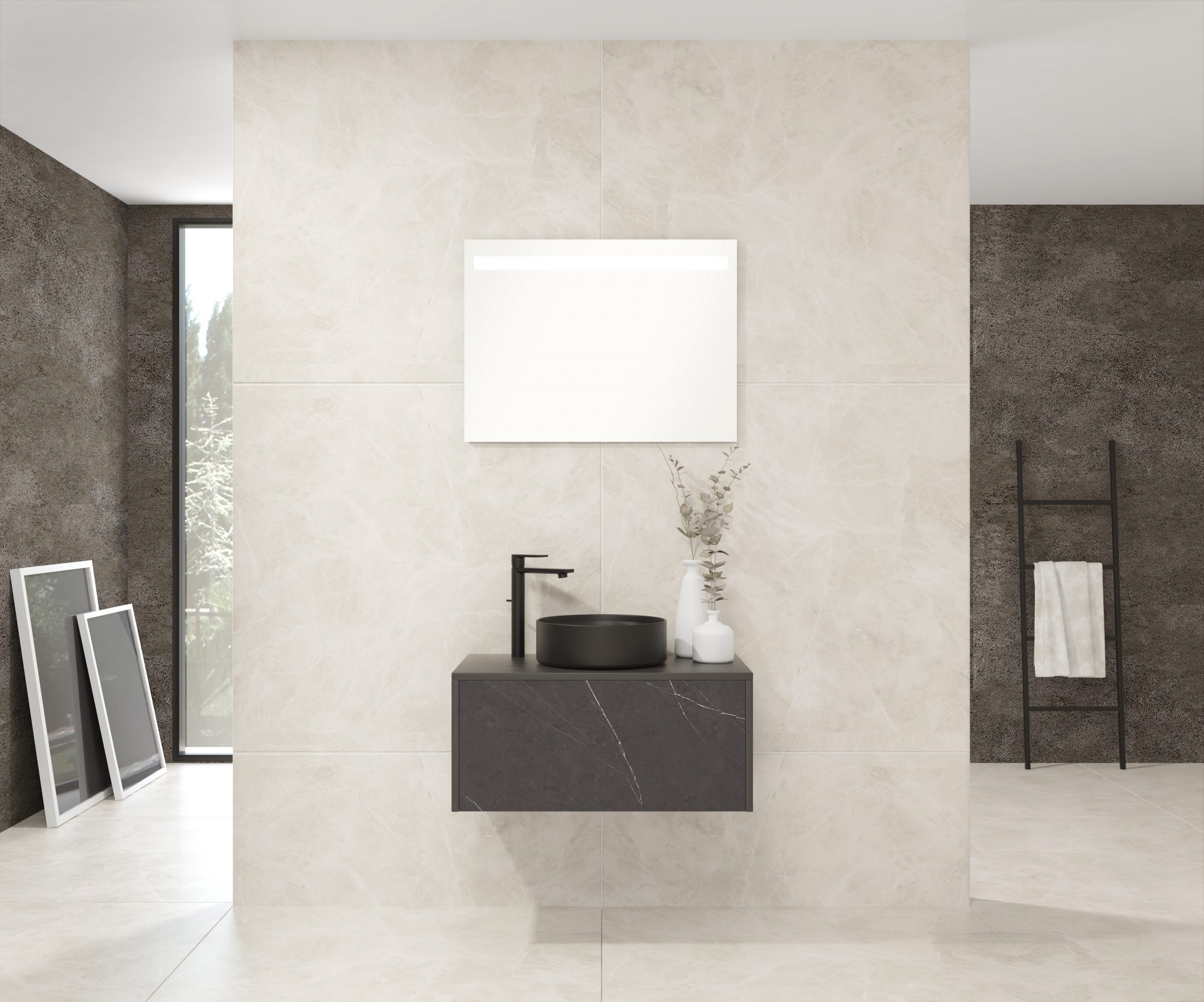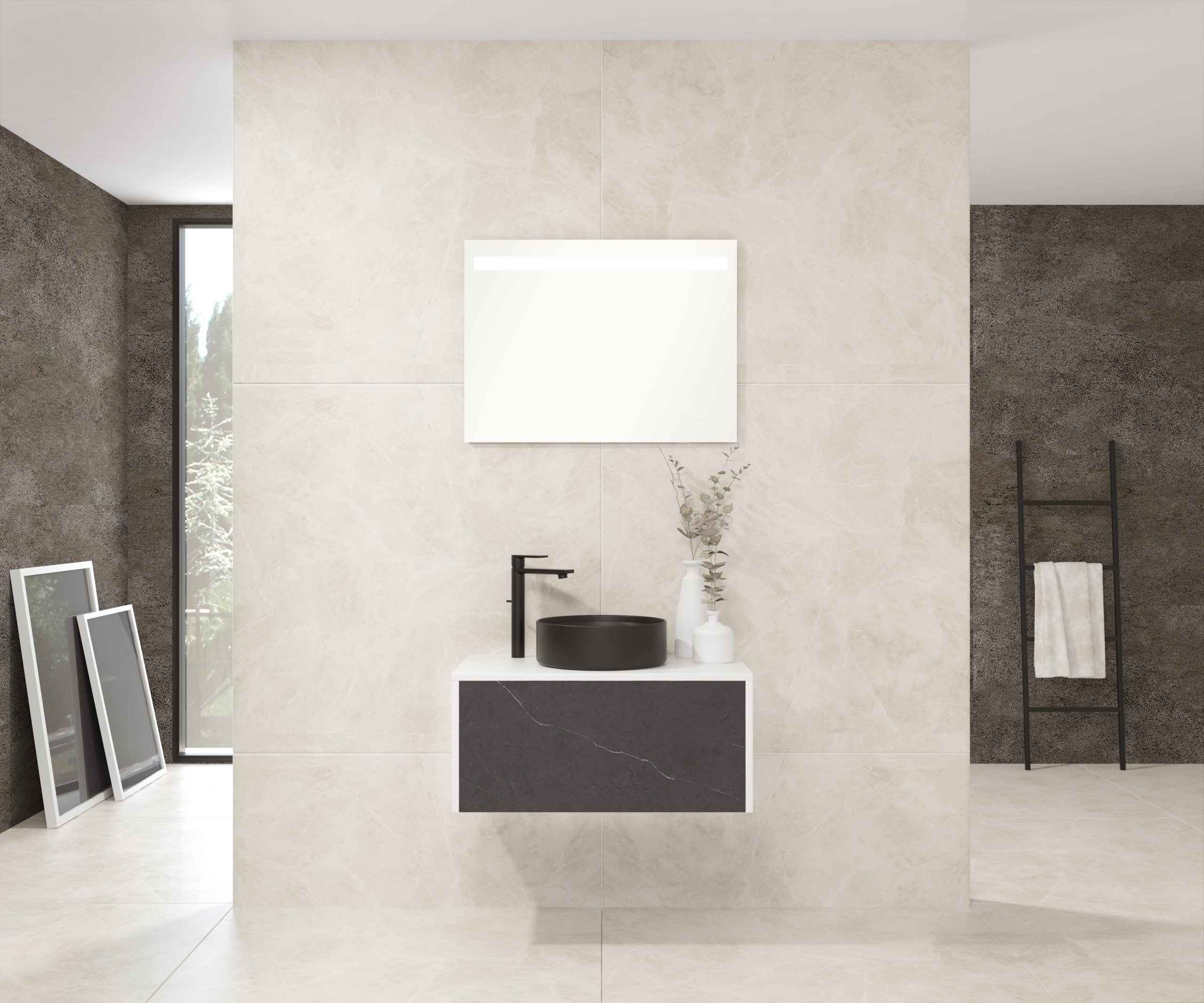 Pack comprenant un meuble de salle de bain, une vasque et un miroir LED. Meuble sous-vasque suspendu fabriqué en panneau de particules de 19 mm avec revêtement mélaminé. Doté d’un tiroir métallique avec fermeture amortie, capacité de charge de 25 kg, accessibilité totale et espace arrière disponible. Façade du meuble décorée avec le matériau Xtone de Porcelanosa, un compact minéral fritté issu de la sélection des matières premières les plus pures, offrant une surface aux performances élevées. Comprend une vasque à poser en céramique. Comprend un miroir avec éclairage LED IP44, température de lumière 6000K. Le meuble est livré monté, prêt à être fixé au mur. Un kit de fixation pour le meuble est inclus. Robinet et siphon non inclus. Fabriqué en Espagne.