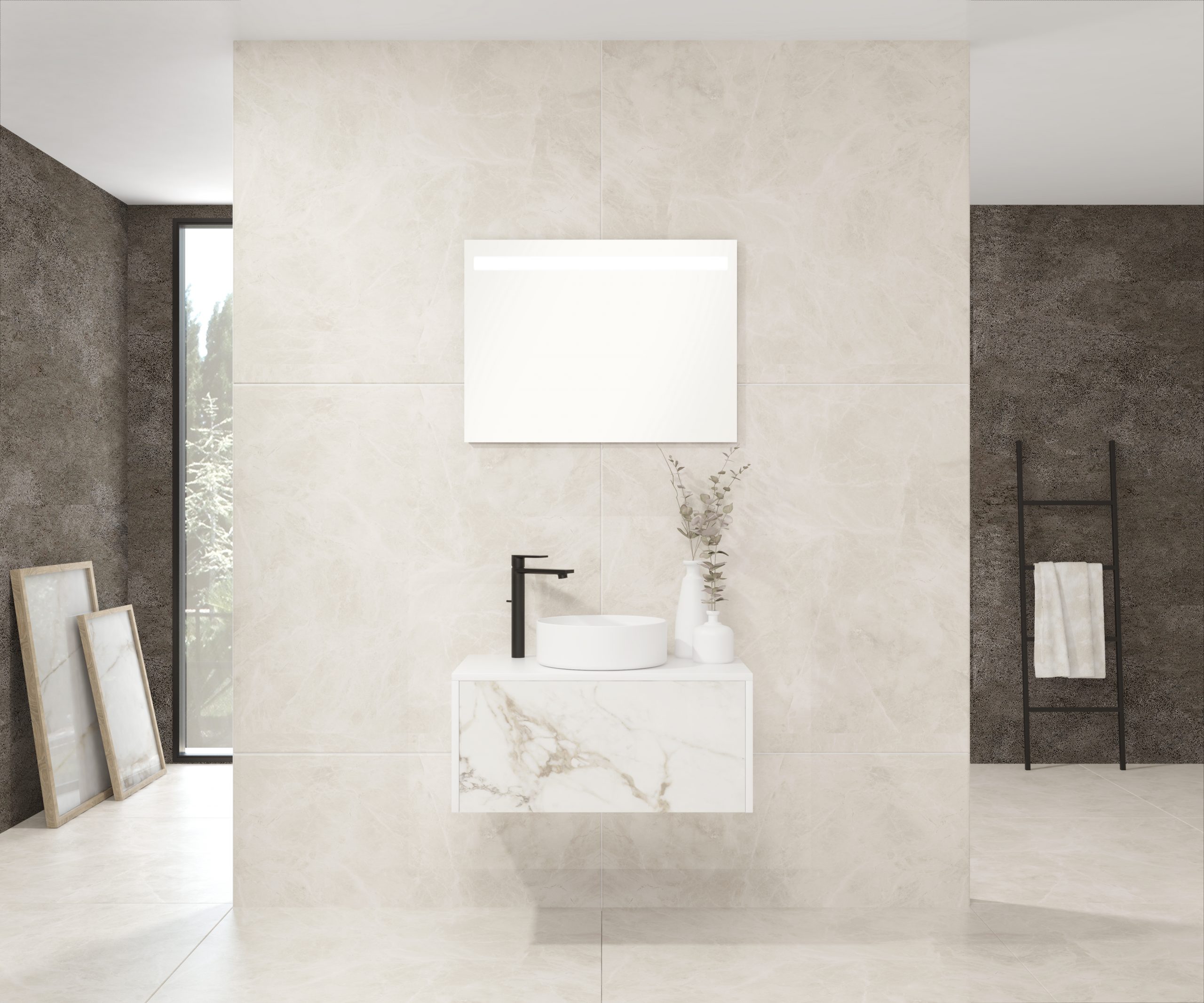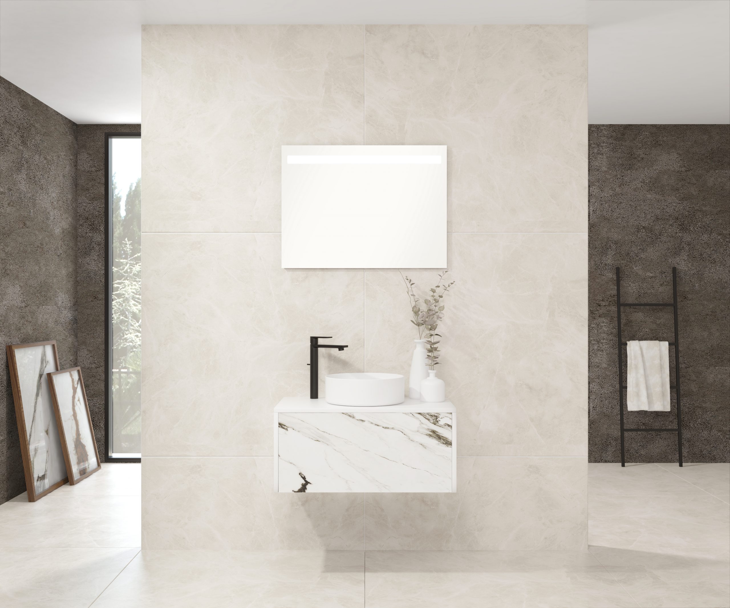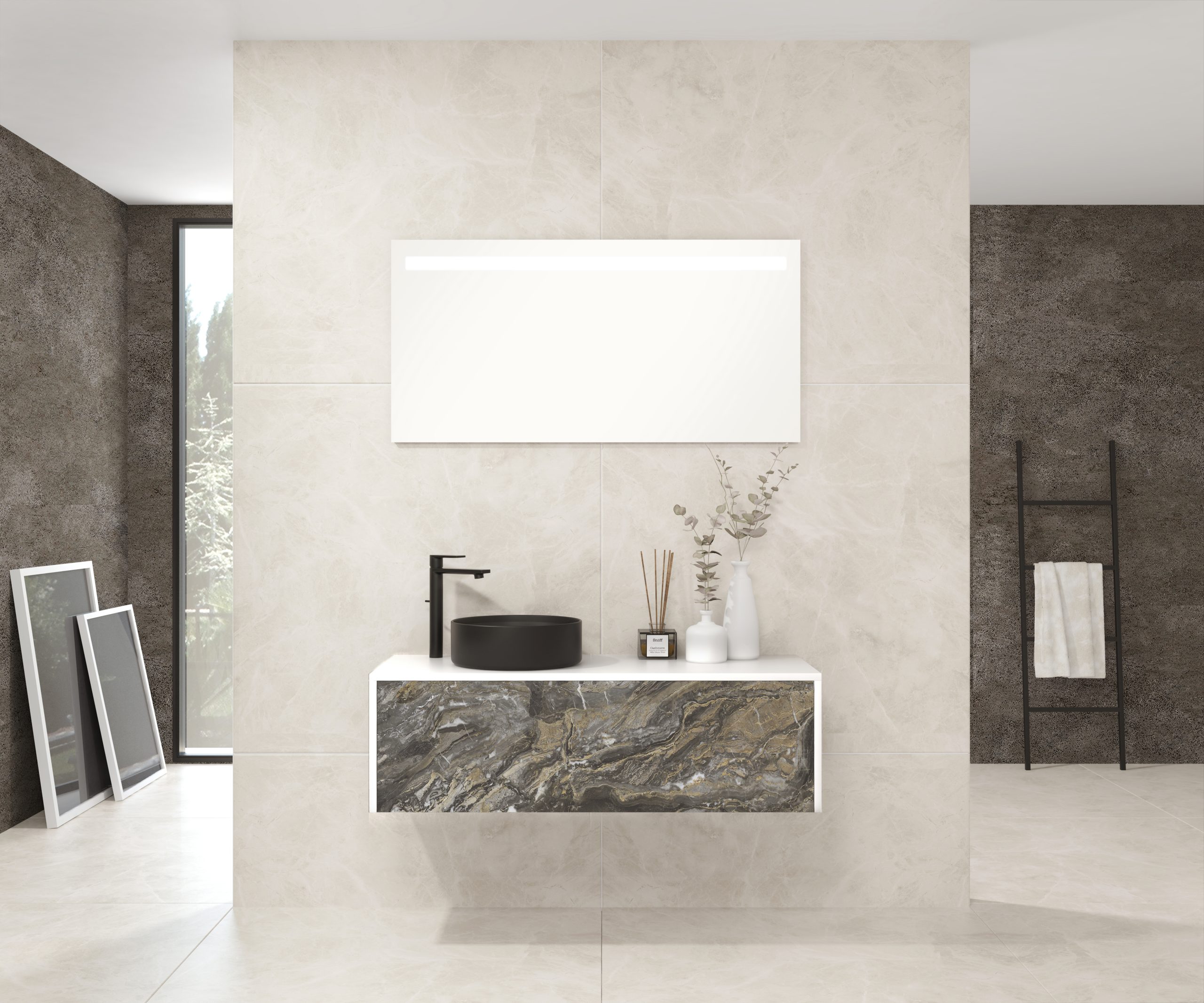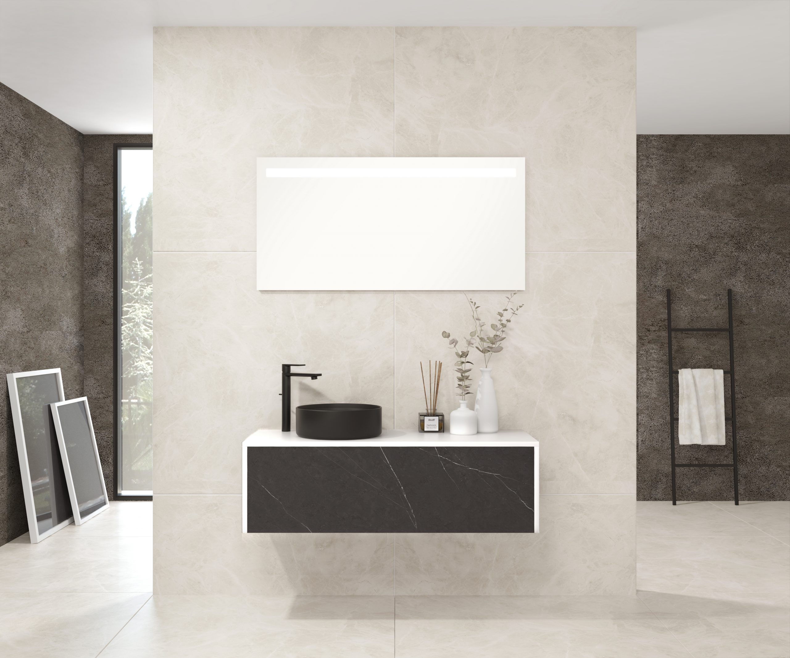 Pack comprenant un meuble de salle de bain, une vasque et un miroir LED. Meuble sous-vasque suspendu fabriqué en panneau de particules de 19 mm avec revêtement mélaminé. Doté d’un tiroir métallique avec fermeture amortie, capacité de charge de 25 kg, accessibilité totale et espace arrière disponible. Façade du meuble décorée avec le matériau Xtone de Porcelanosa, un compact minéral fritté issu de la sélection des matières premières les plus pures, offrant une surface aux performances élevées. Comprend une vasque à poser en céramique. Comprend un miroir avec éclairage LED IP44, température de lumière 6000K. Le meuble est livré monté, prêt à être fixé au mur. Un kit de fixation pour le meuble est inclus. Robinet et siphon non inclus. Fabriqué en Espagne.