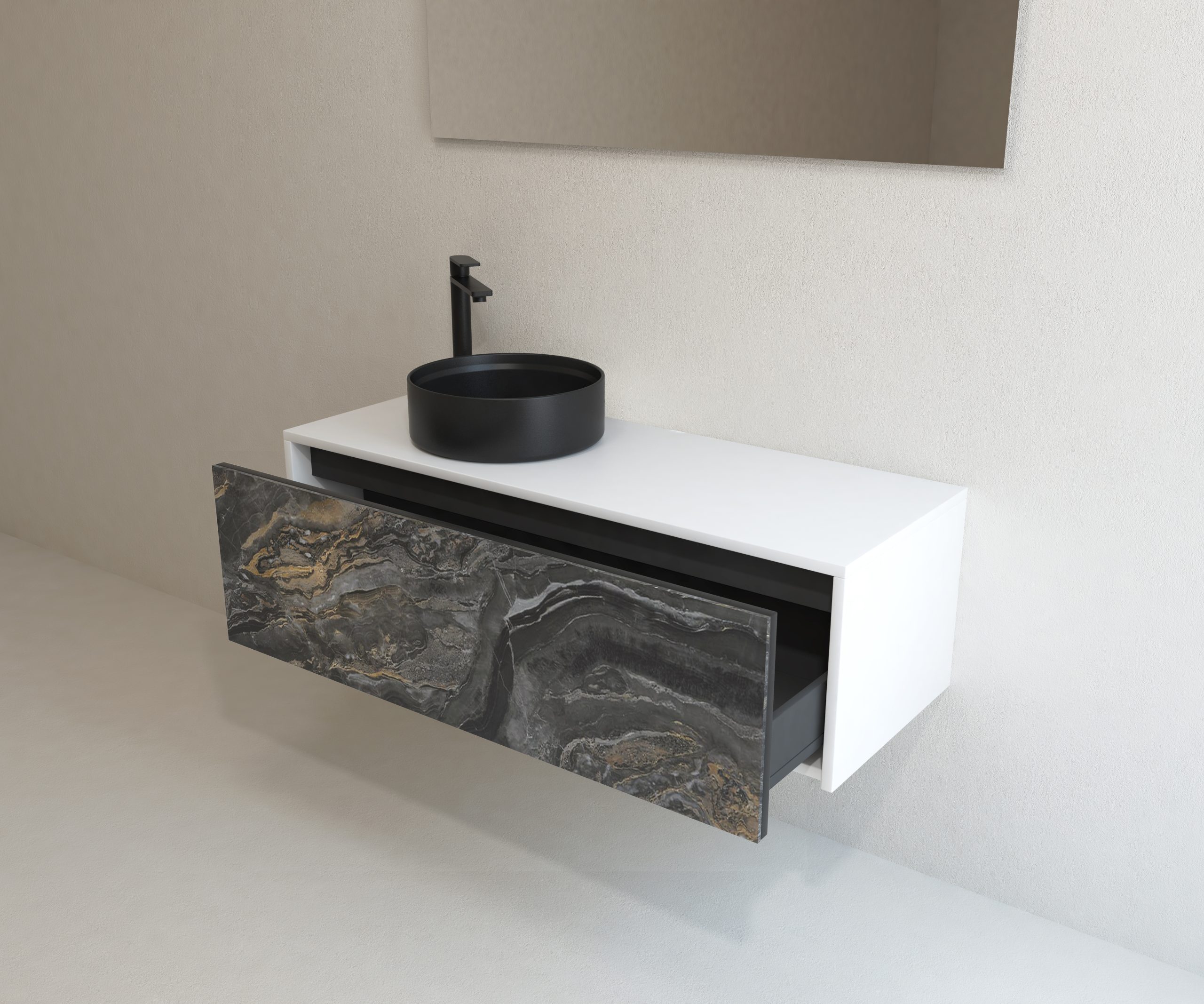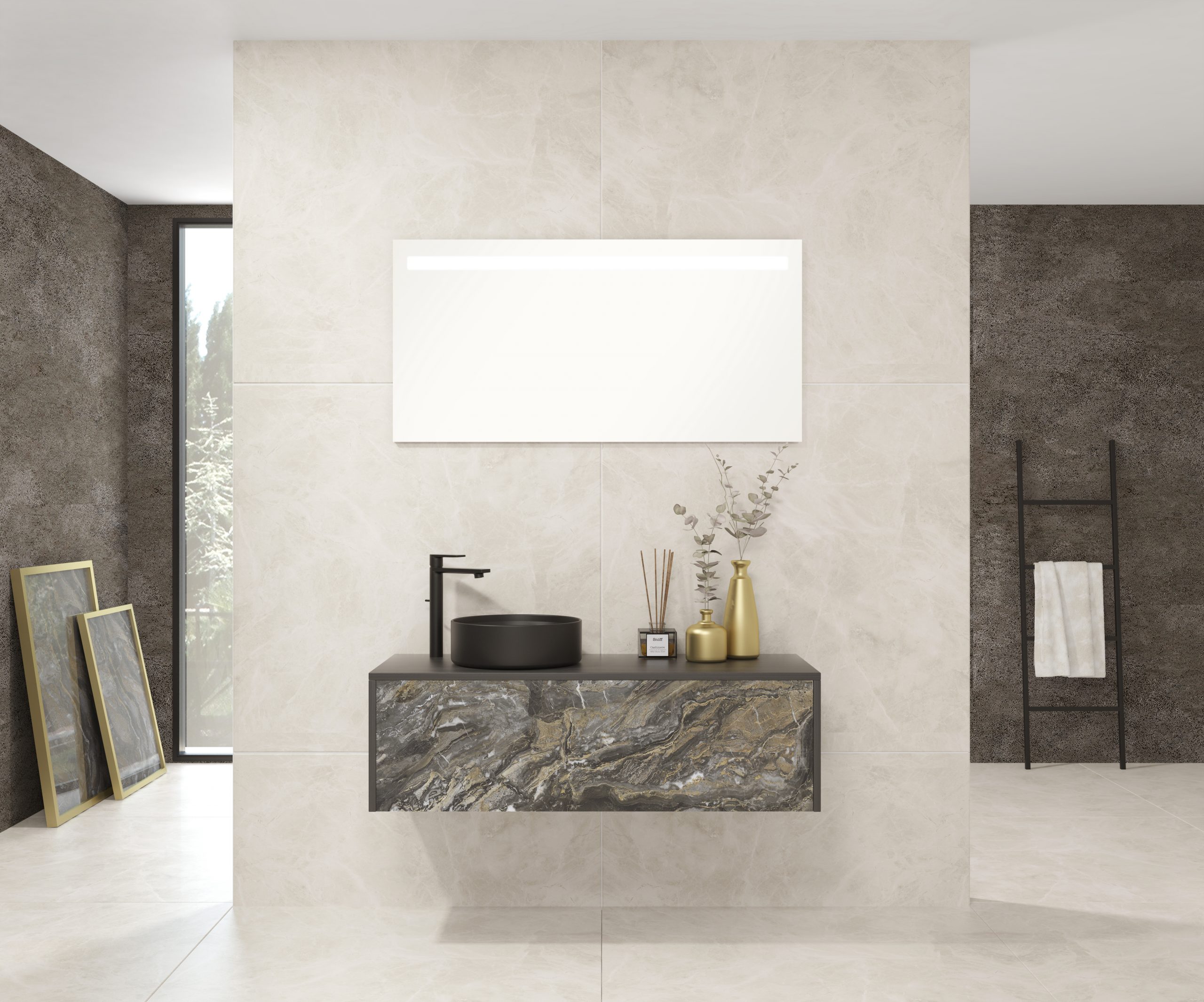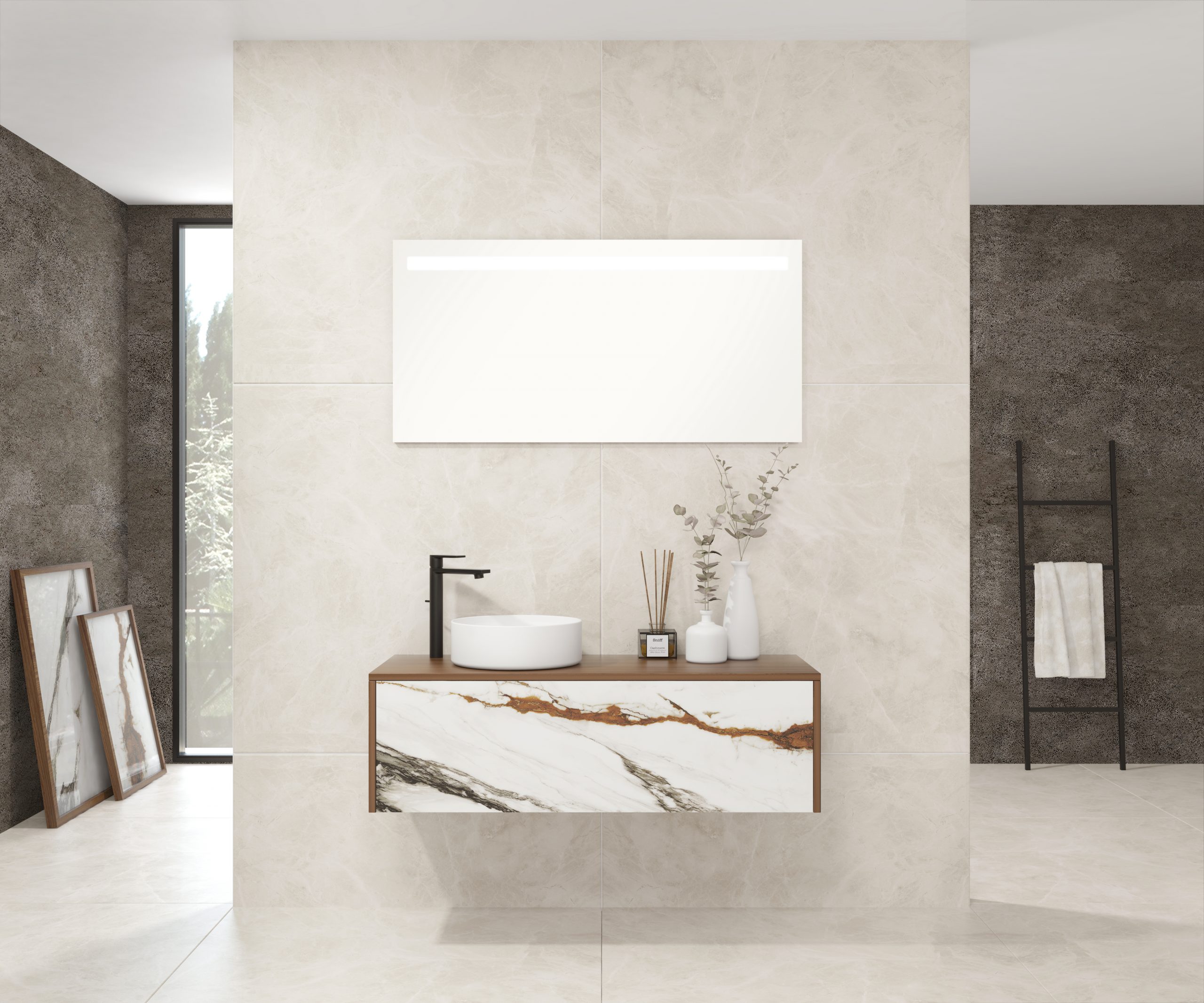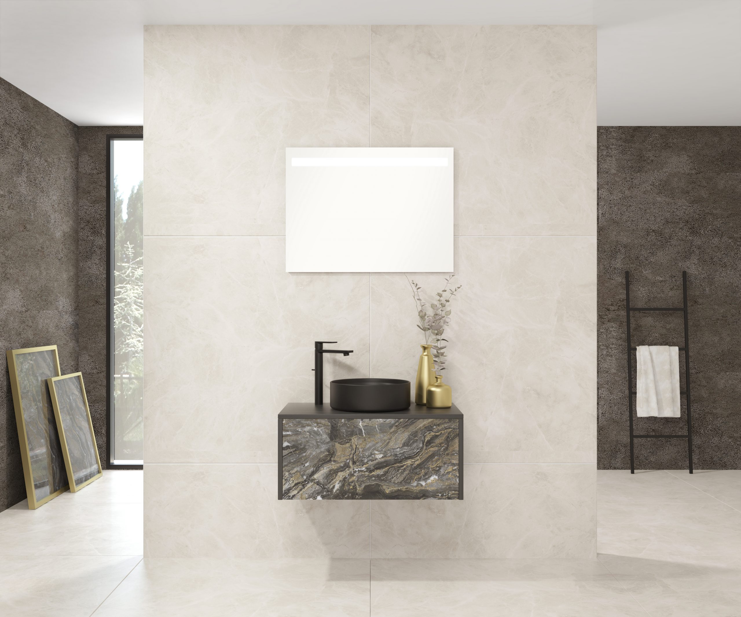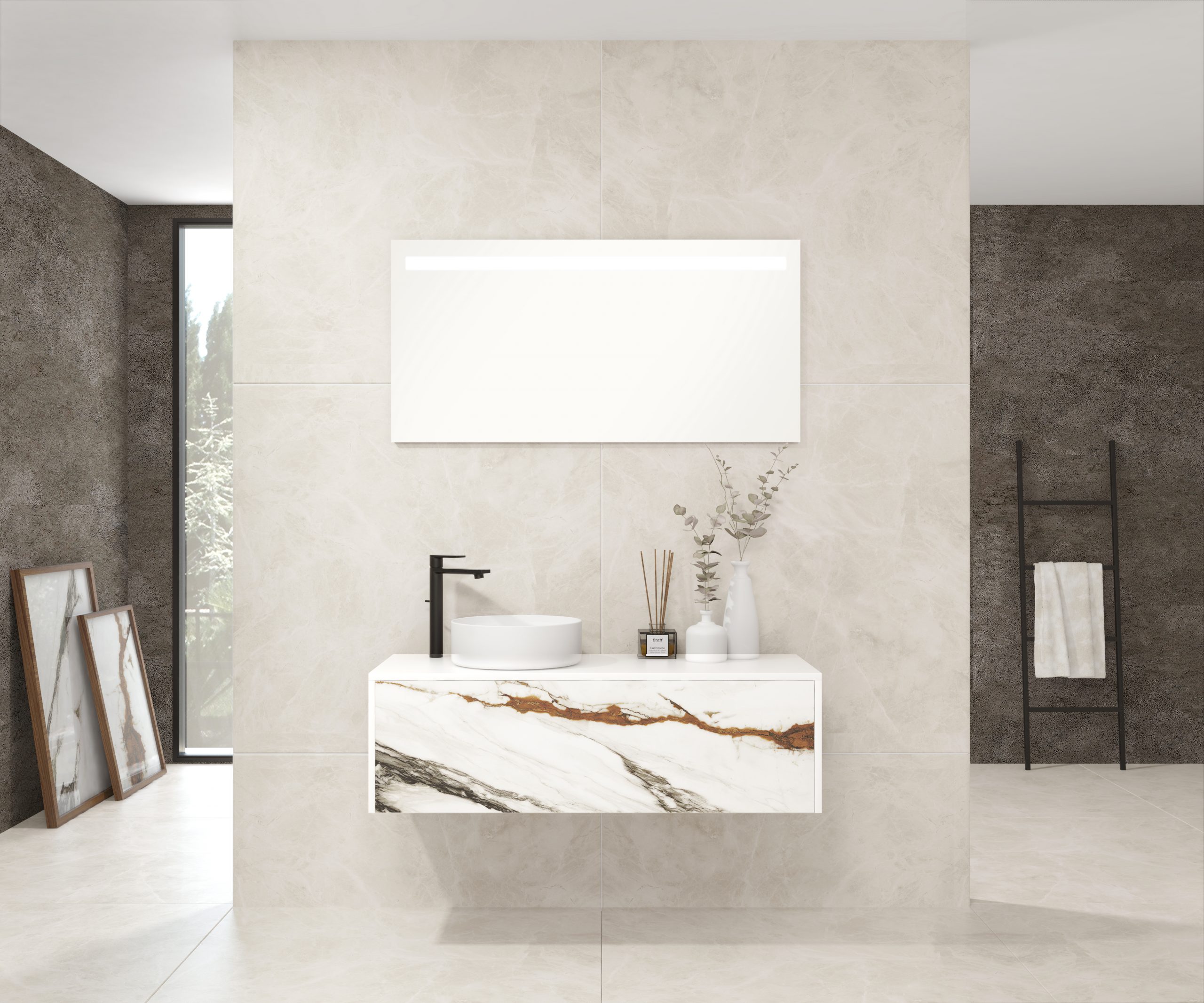 Pack comprenant un meuble de salle de bain, une vasque et un miroir LED. Meuble sous-vasque suspendu fabriqué en panneau de particules de 19 mm avec revêtement mélaminé. Doté d’un tiroir métallique avec fermeture amortie, capacité de charge de 25 kg, accessibilité totale et espace arrière disponible. Façade du meuble décorée avec le matériau Xtone de Porcelanosa, un compact minéral fritté issu de la sélection des matières premières les plus pures, offrant une surface aux performances élevées. Comprend une vasque à poser en céramique. Comprend un miroir avec éclairage LED IP44, température de lumière 6000K. Le meuble est livré monté, prêt à être fixé au mur. Un kit de fixation pour le meuble est inclus. Robinet et siphon non inclus. Fabriqué en Espagne.