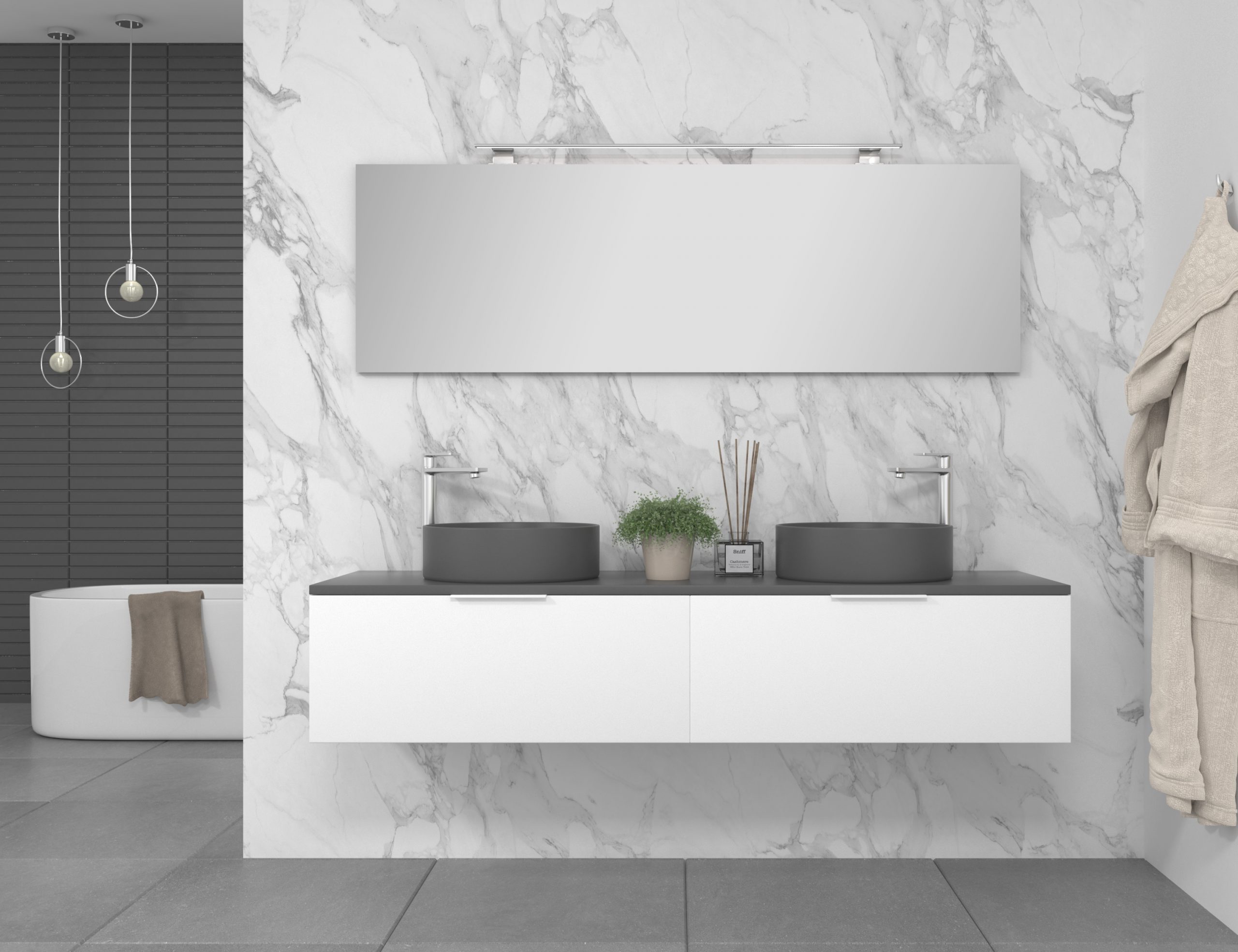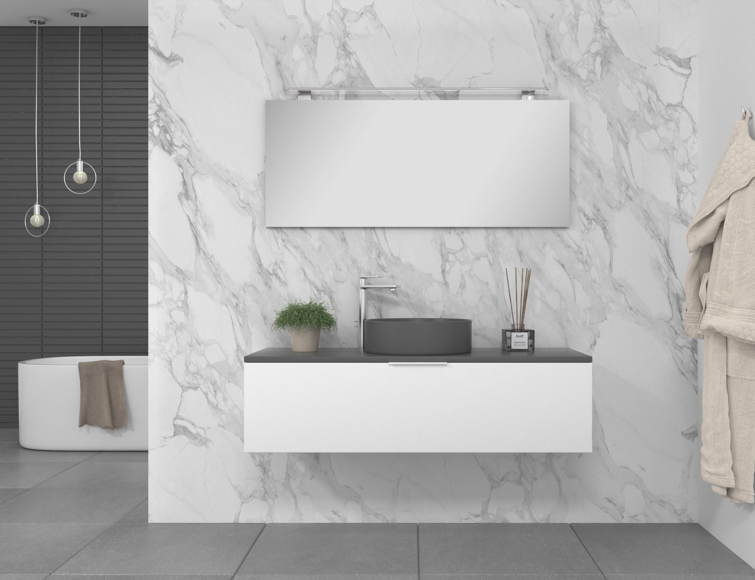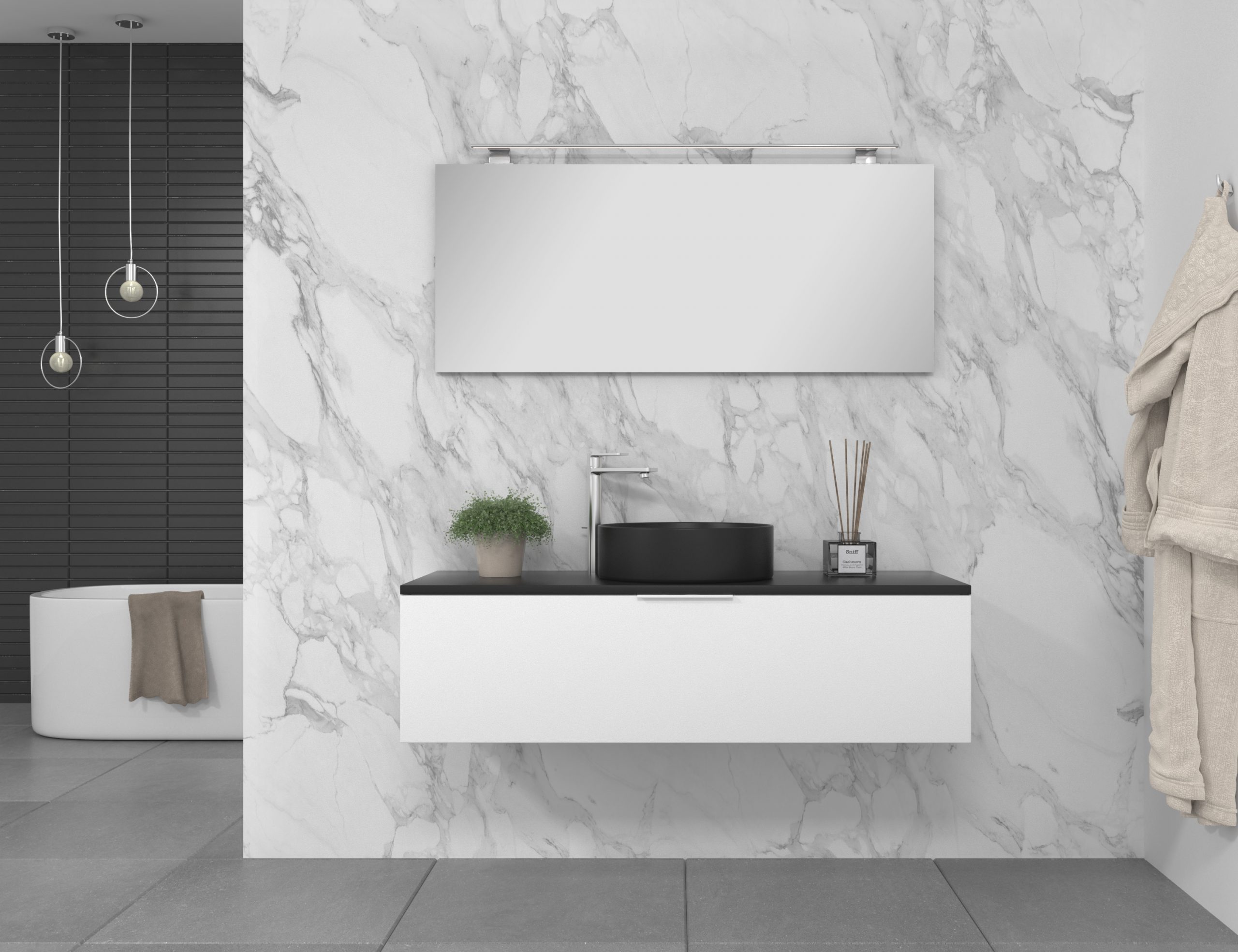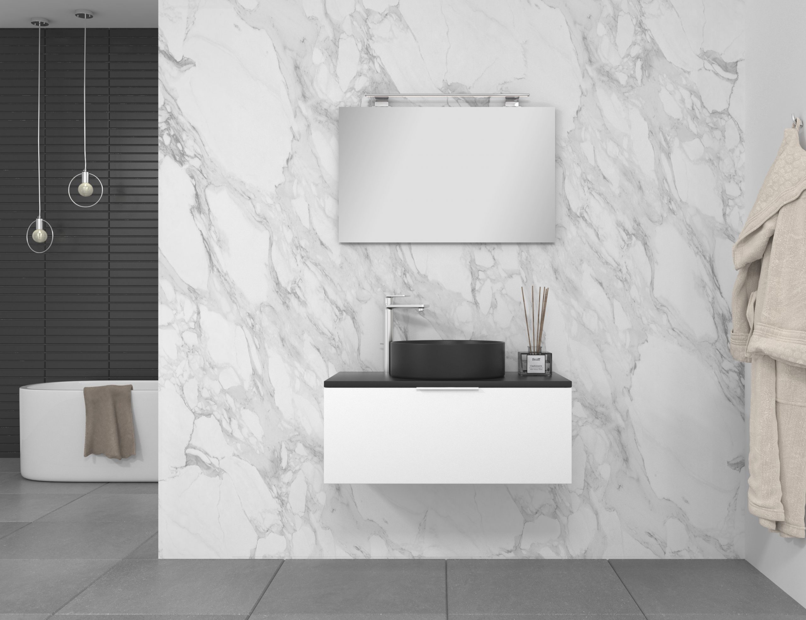Pack composé d’un meuble de salle de bain fabriqué en panneau de particules mélaminé de 19mm stratifié blanc mat, comprenant un tiroir de grande capacité, entièrement extractible et à fermeture douce. Plan de travail du meuble de couleur assortie à la vasque à poser en céramique incluse. Miroir avec éclairage LED intégré inclus IP54, 6000ºK, 8,5W, 920 lumens. Fabriqué en Espagne.