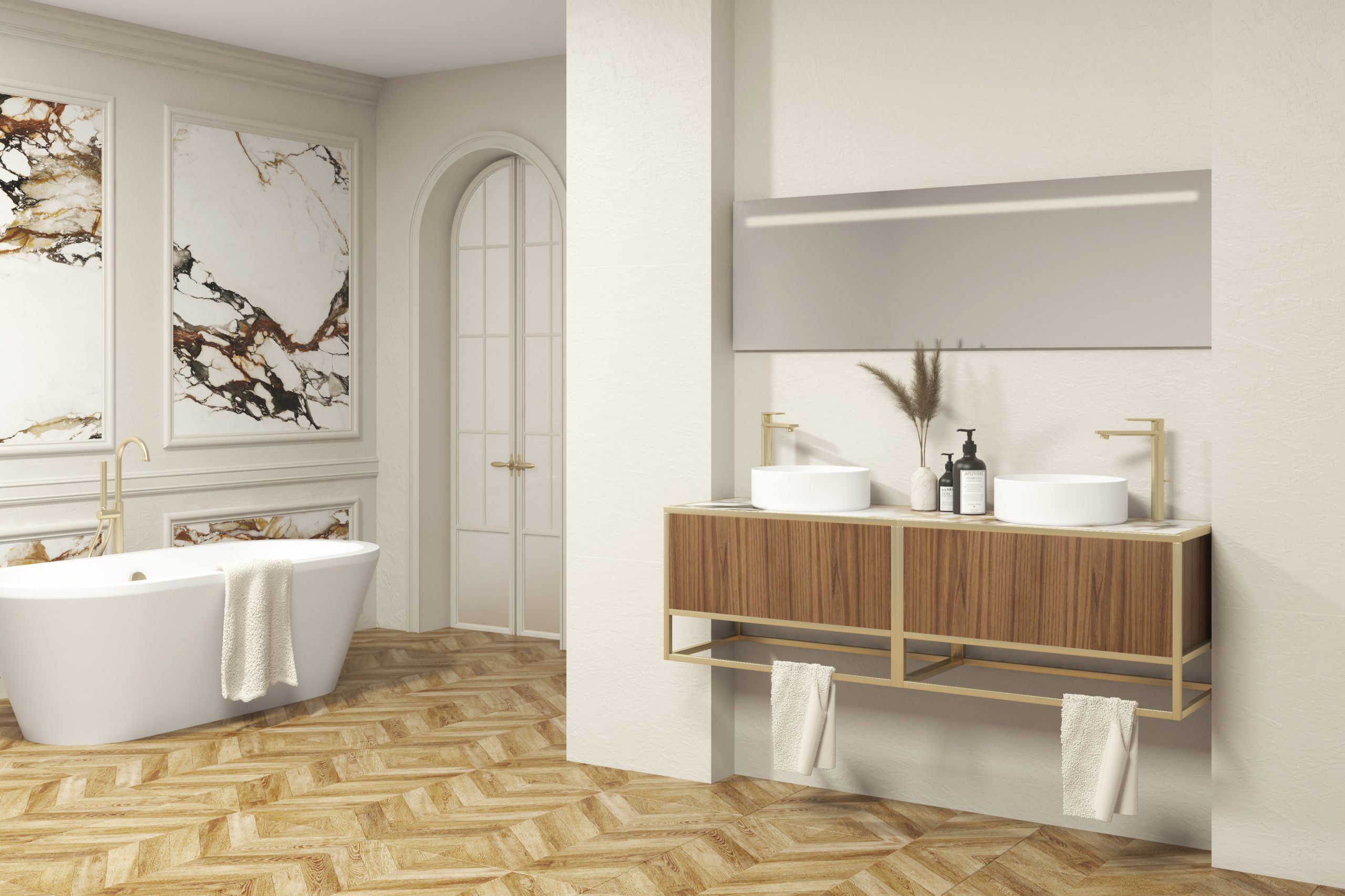 Ensemble meuble de salle de bain suspendu, vasque et miroir avec éclairage LED. Plan de travail en matériau Xtone de Porcelanosa, matériau minéral compact fritté issu de la sélection des matières premières les plus pures, permettant d’obtenir une surface aux performances élevées. Meuble de salle de bain suspendu fabriqué en panneau de particules finition bois stratifié de 19 mm avec micro-relief, doté d’un tiroir finition anthracite mat à extraction totale et fermeture douce. Structure métallique finition noir mat. Comprend une vasque à poser en céramique. Comprend un miroir avec éclairage LED, IP65, 10,8 W, 1170lm et une température de couleur de 6000K. Le meuble est livré monté, prêt à être fixé au mur. Un kit de fixation pour le meuble est inclus. Robinet et siphon non inclus. Fabriqué en Espagne.