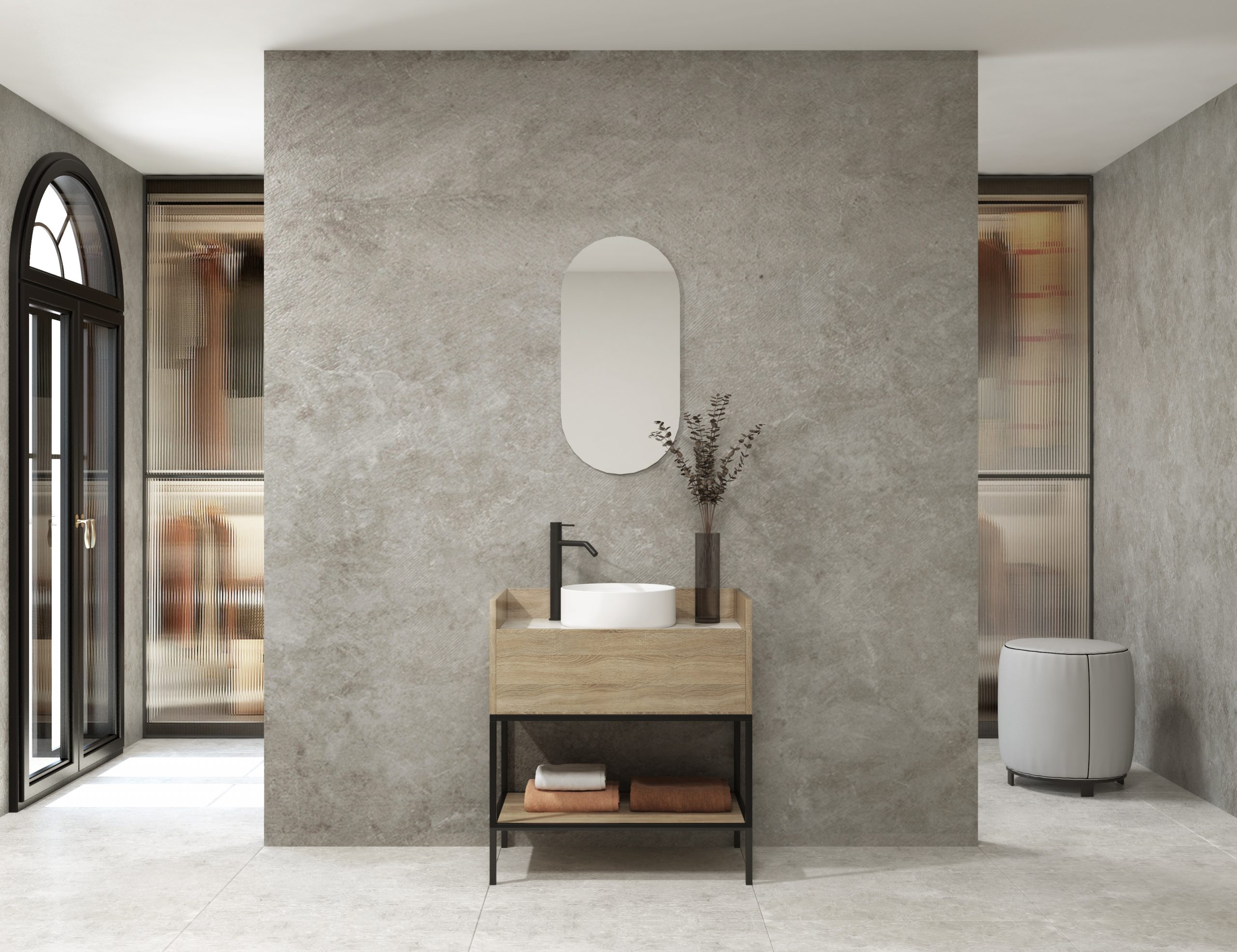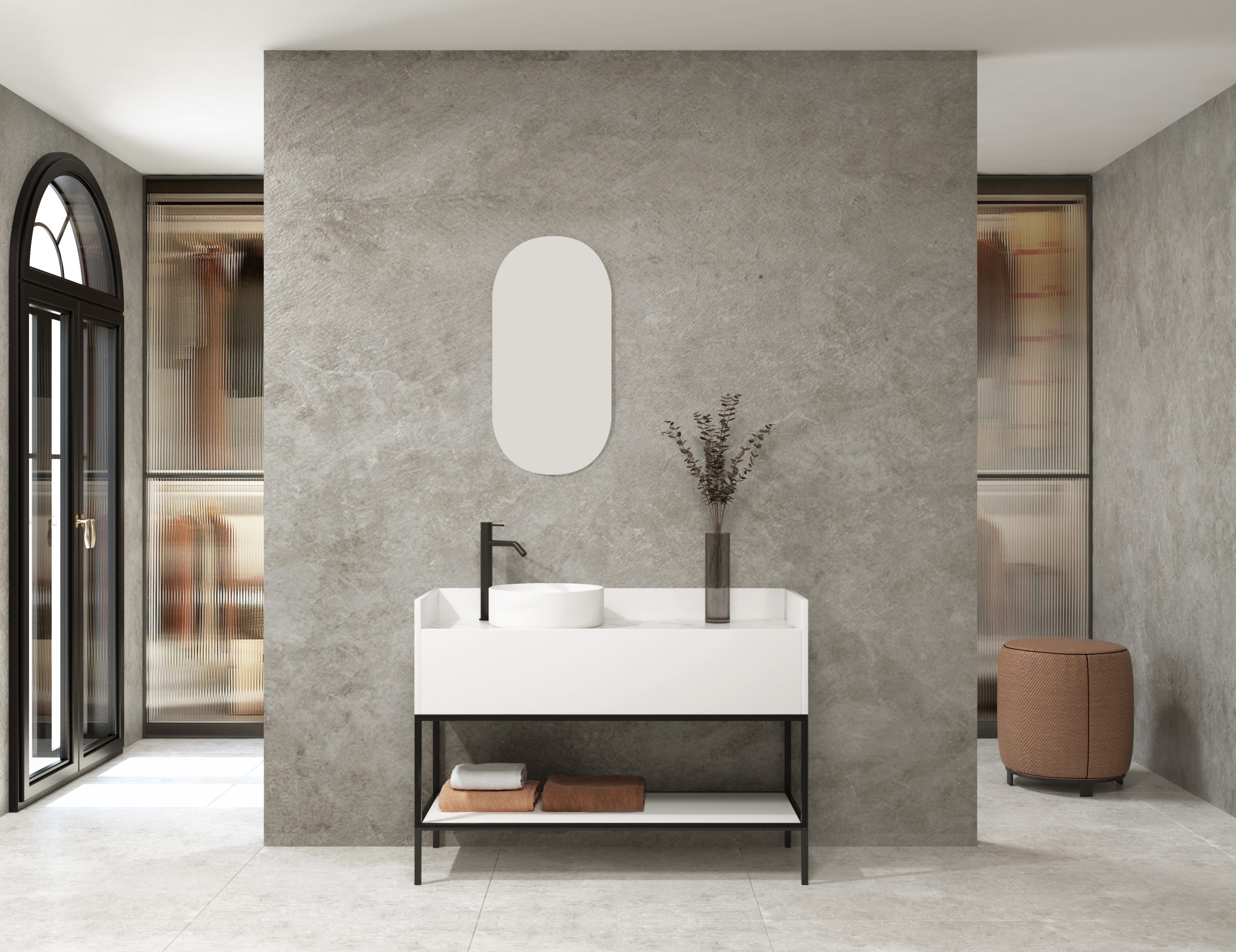 Ensemble de meuble de salle de bain suspendu, lavabo et miroir. Plan de travail en Xtone de Porcelanosa, un matériau minéral compact fritté issu de la sélection des matières premières les plus pures, offrant une surface aux performances élevées. Meuble de salle de bain suspendu fabriqué en panneau de particules finition bois stratifié de 19 mm avec micro-relief et des caractéristiques de surface optimales, écologique et recyclable. Tiroir métallique à double paroi à l’esthétique minimaliste, avec des côtés fins et des lignes droites, fermeture amortie, accessibilité totale et espace arrière disponible. Structure métallique finition noir mat. Fixations de meuble avec système anti-décrochement et réglage horizontal et vertical. Comprend un lavabo à poser en céramique. Comprend un miroir design capsule. Le meuble est livré monté, prêt à être fixé au mur. Un kit de fixation pour le meuble est inclus. Robinet et siphon non inclus. Fabriqué en Espagne.
