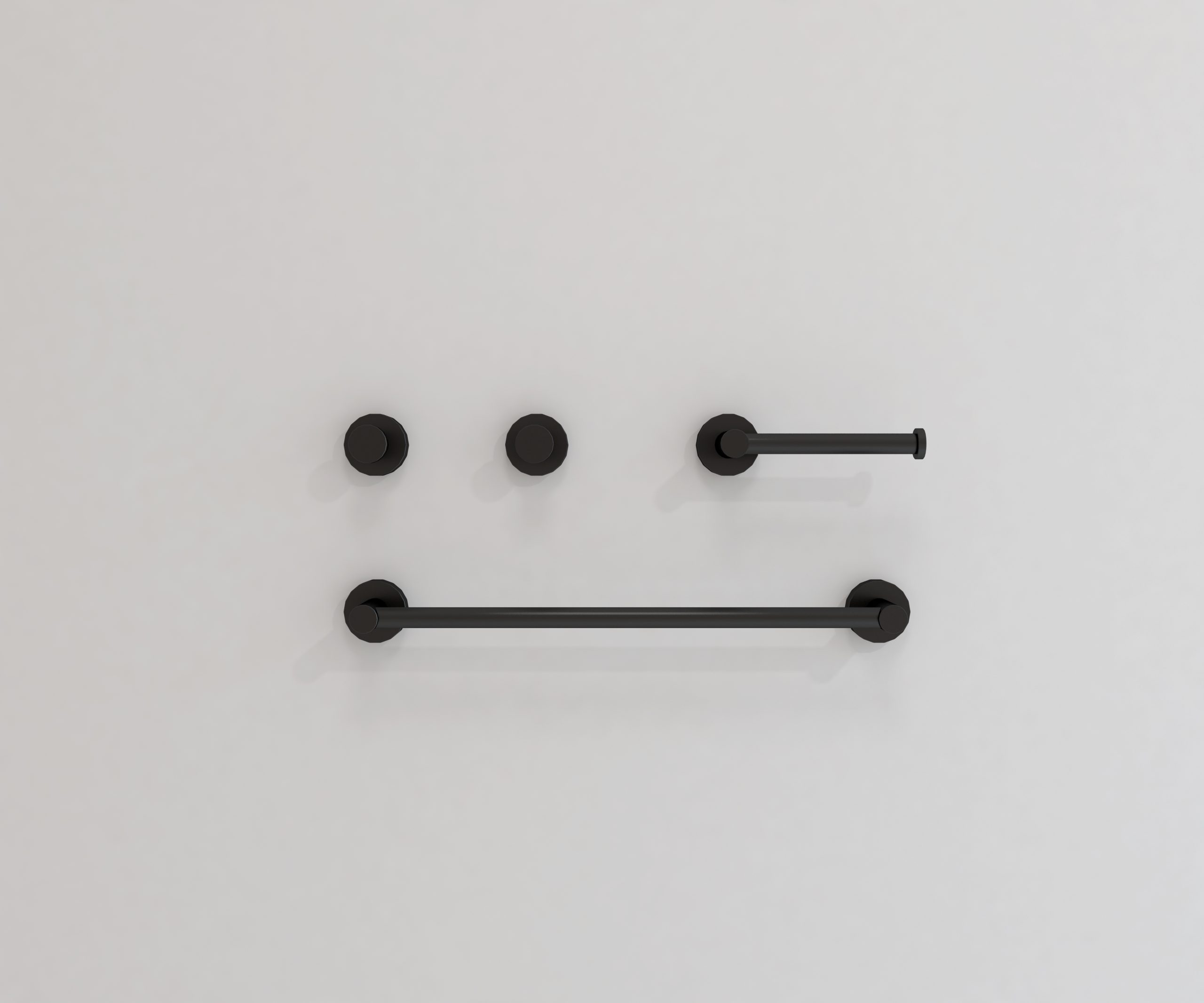 Pack accesorios SET BALI toallero + portarollos + doble percha negro mate