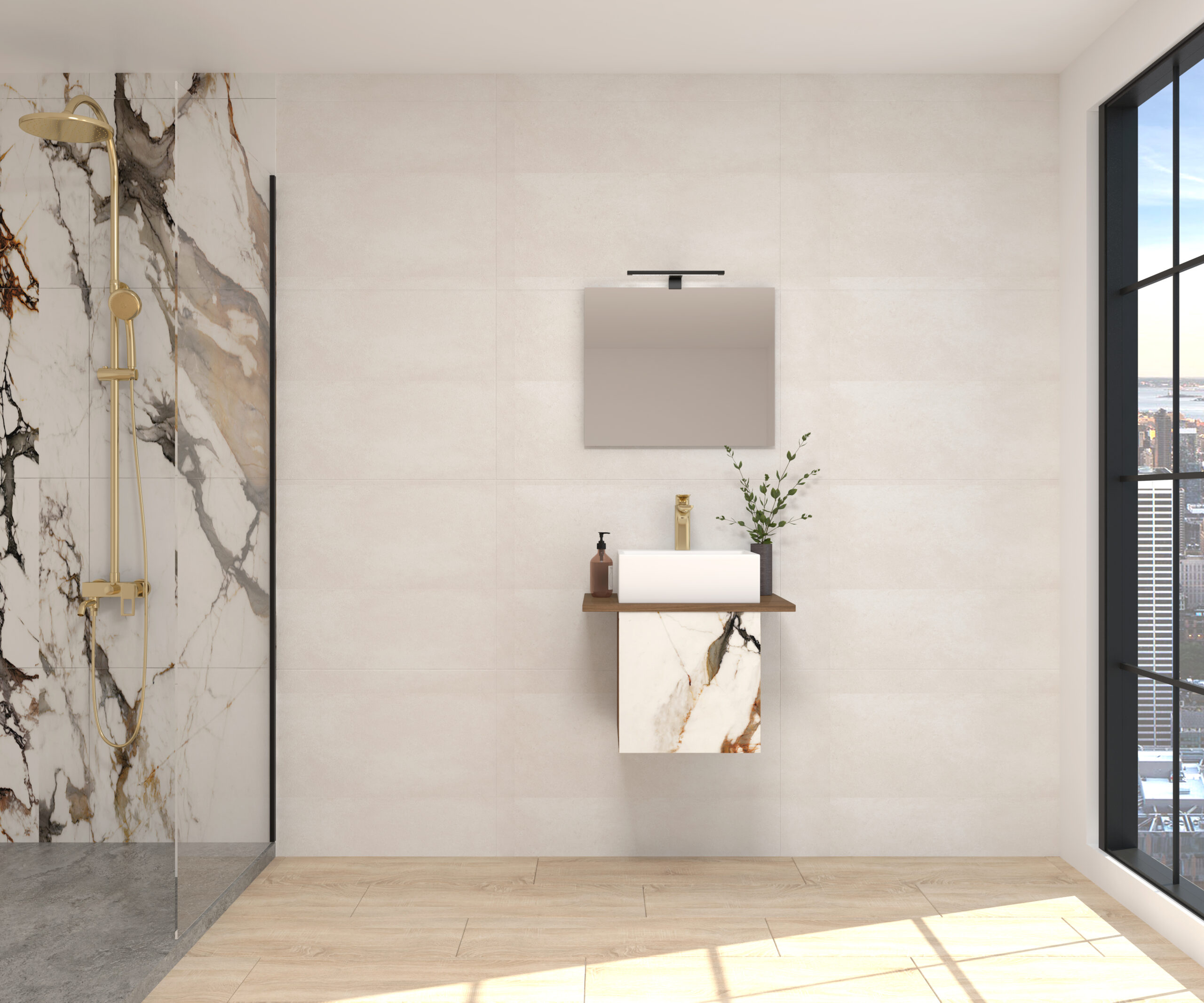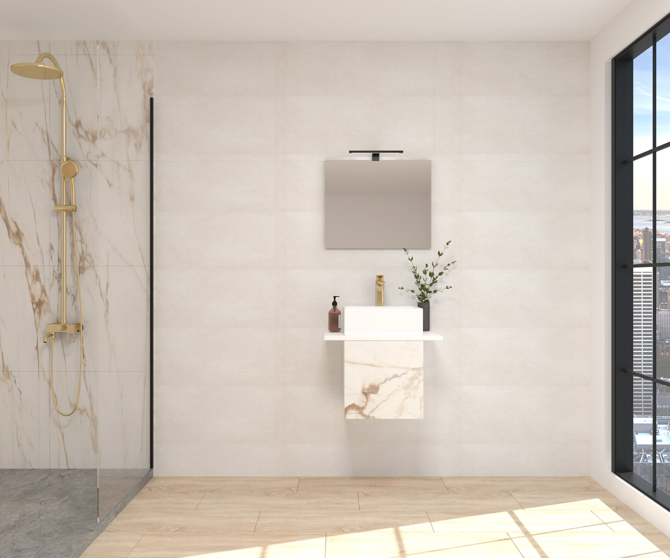 Pack CUBIQUE LUXE + lavabo + espejo + aplique LED