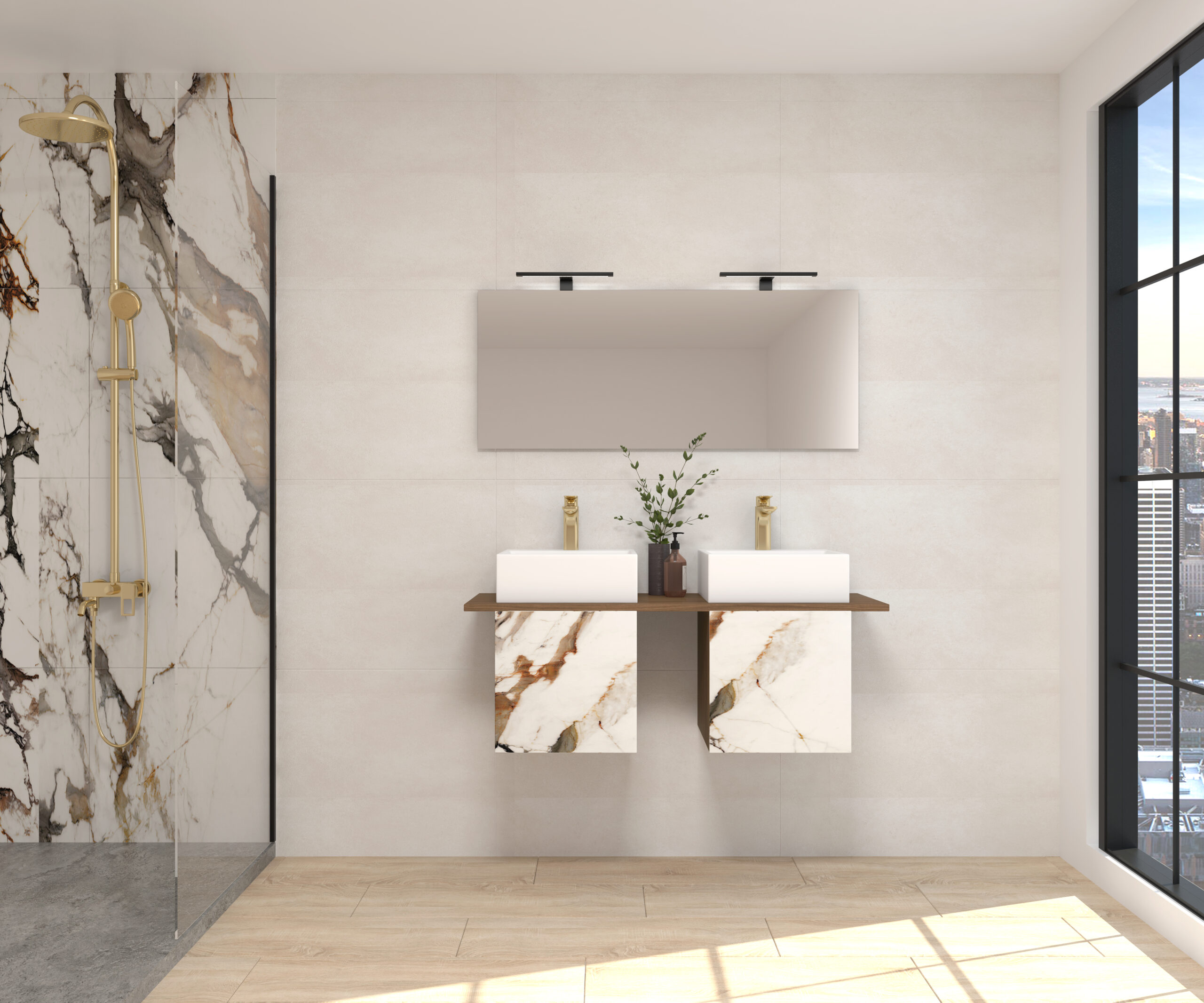 Calacatta gold – Blanco mate, Orobico dark – Bardolino, Paonazzo biondo – Nogal