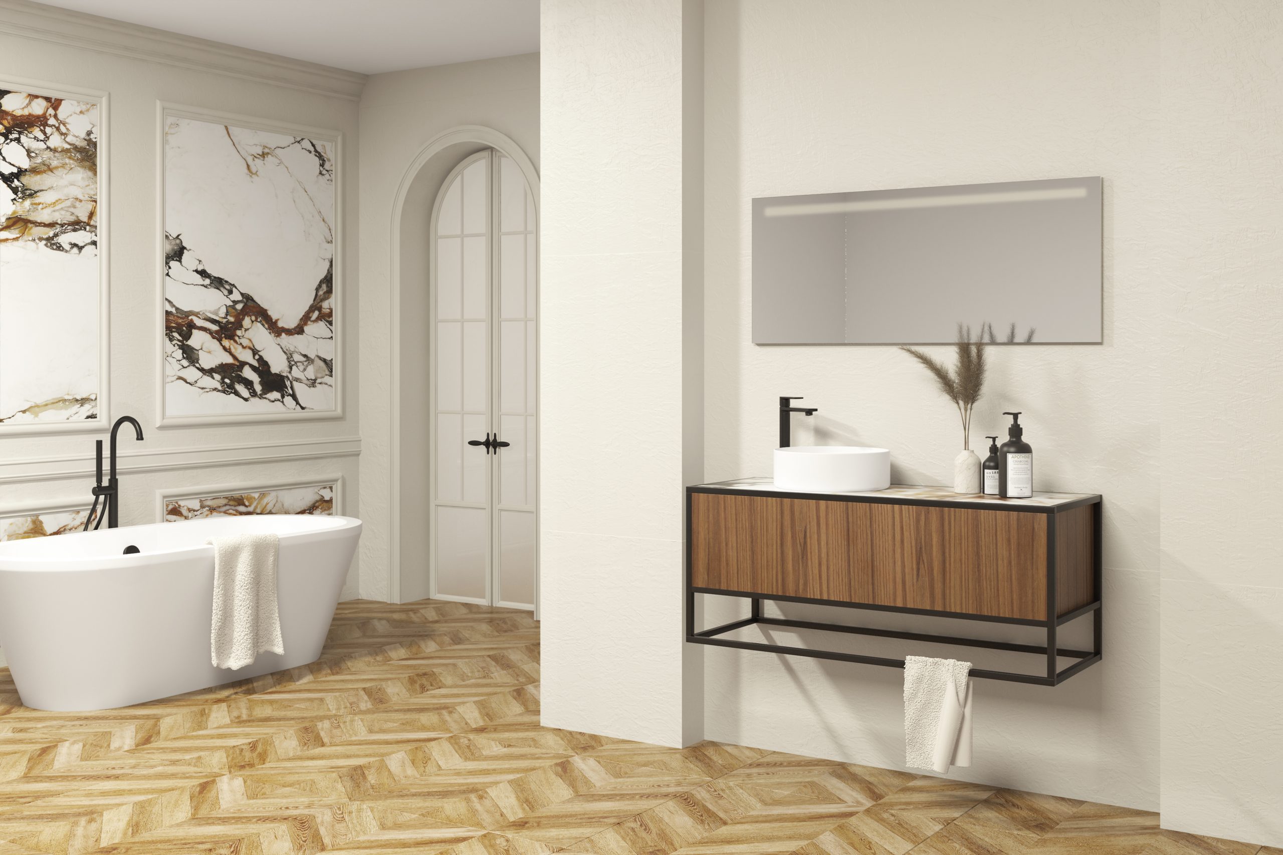 Pack ÉLÉGANT XTONE estructura negra + lavabo + espejo LED