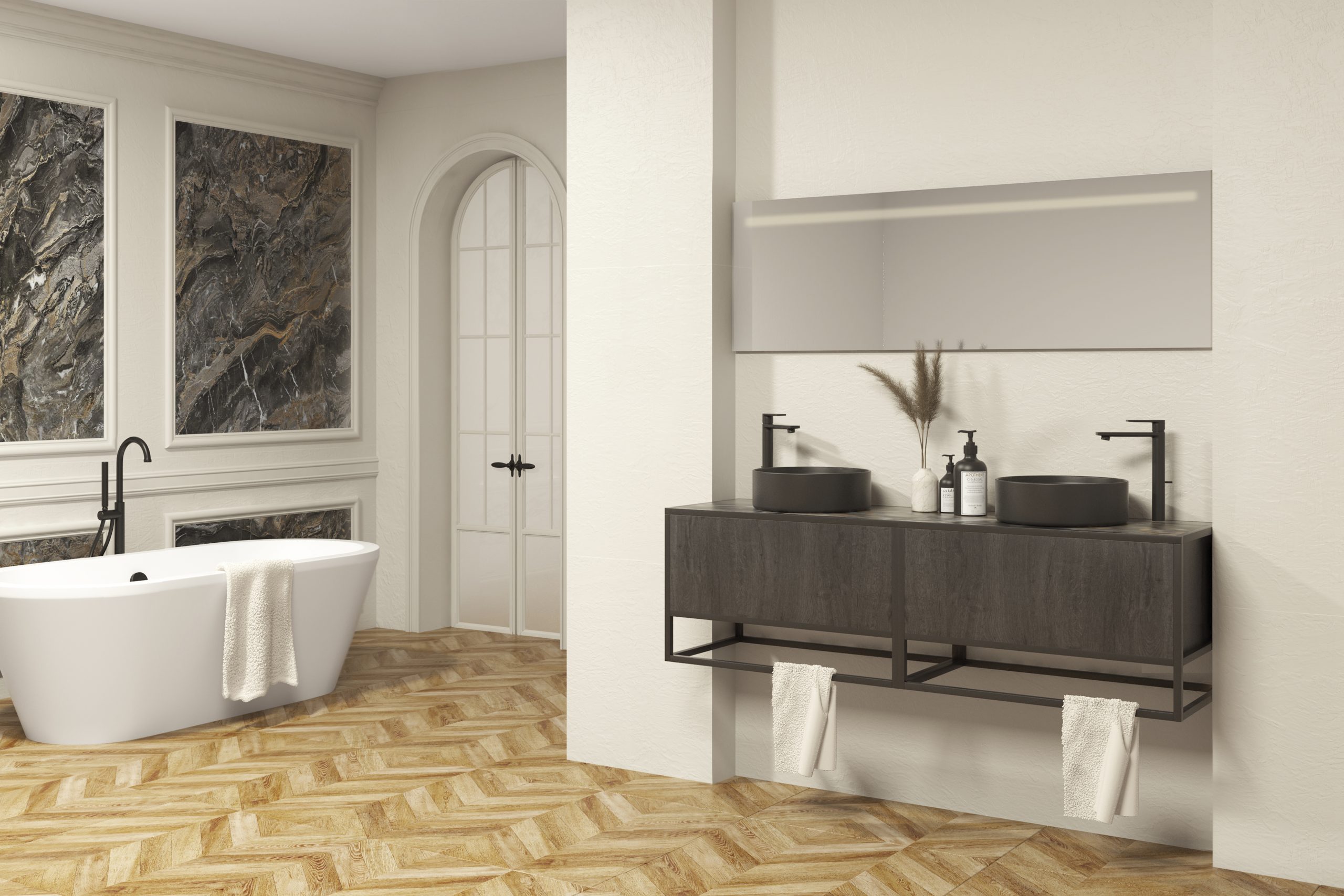 Pack ÉLÉGANT XTONE estructura negra + lavabo + espejo LED