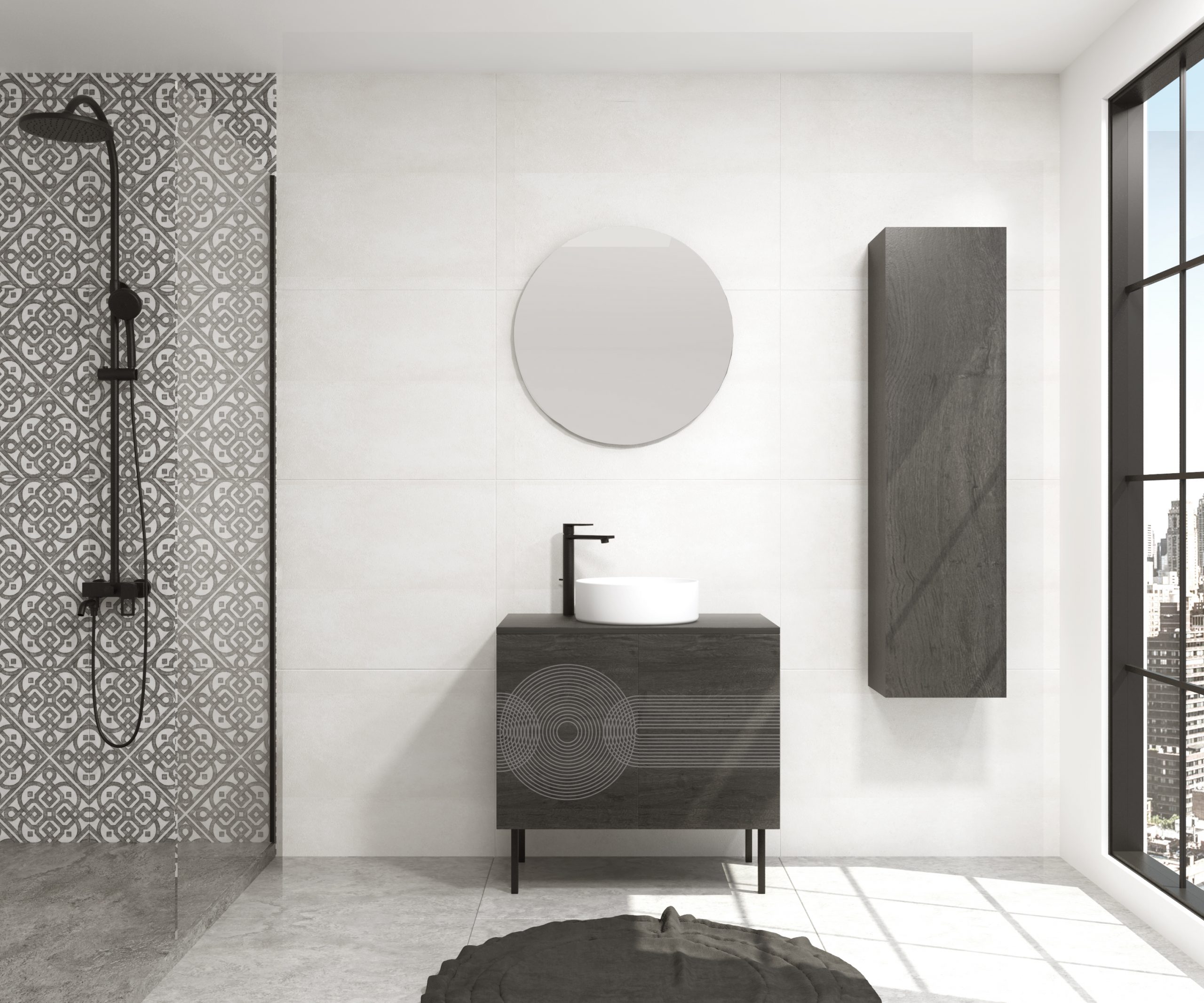 Pack mueble de baño ANNEAU + lavabo + espejo circular LED
